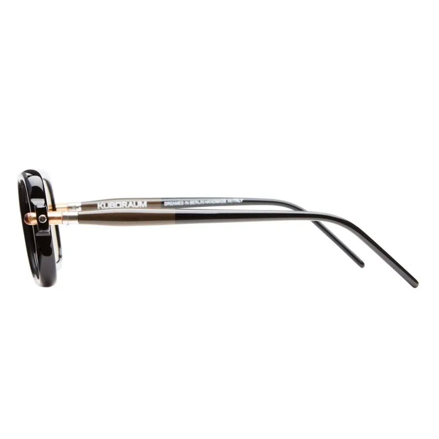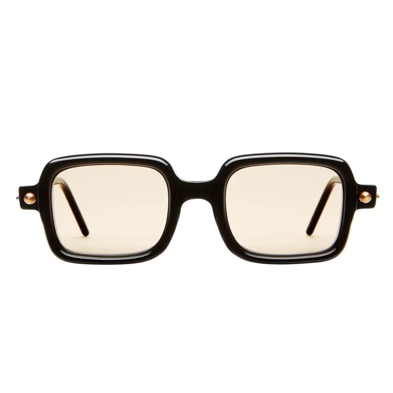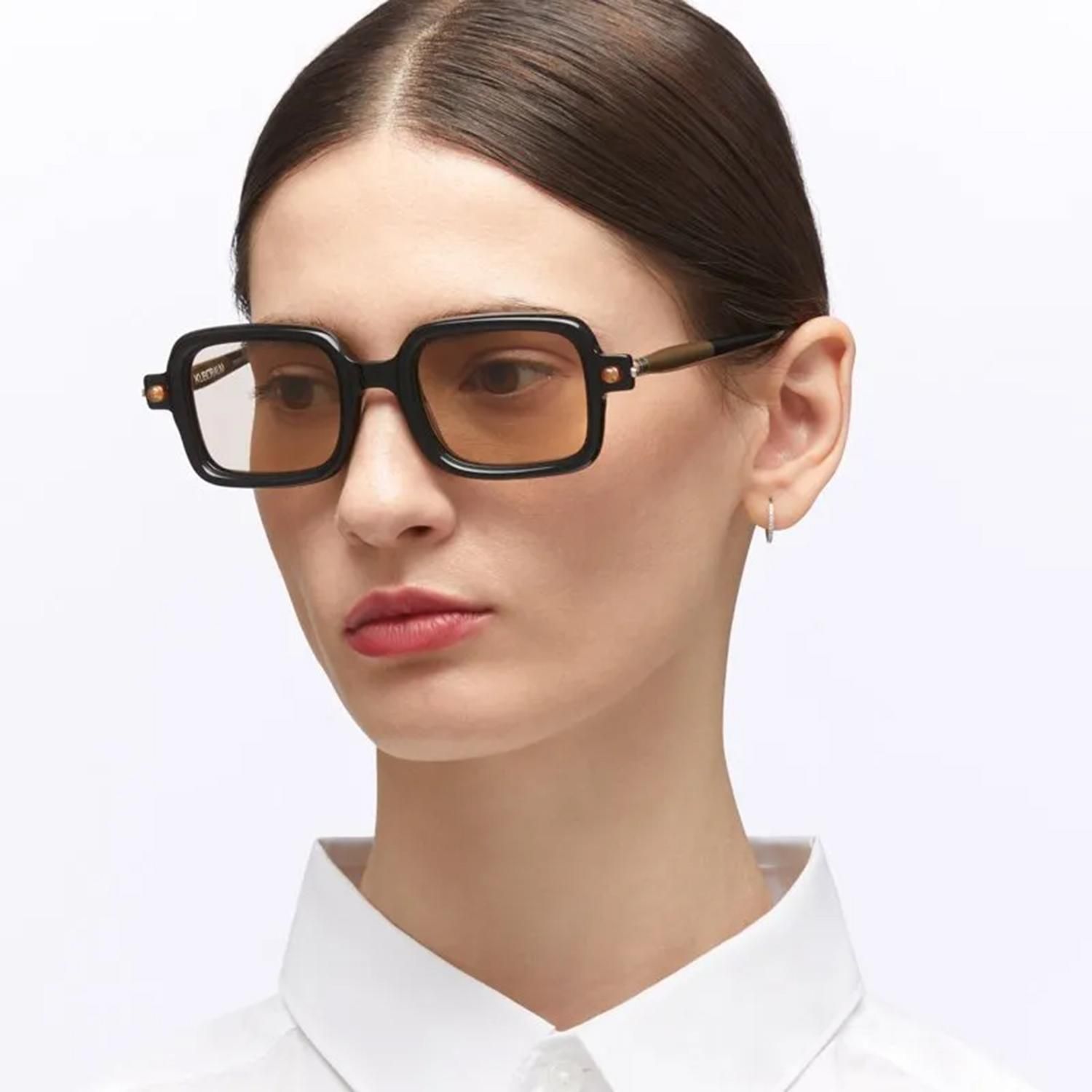 オーソドックスなシルエットに、艶感のあるブラックのフレームを軸にしたライトブラウンレンズサングラス。