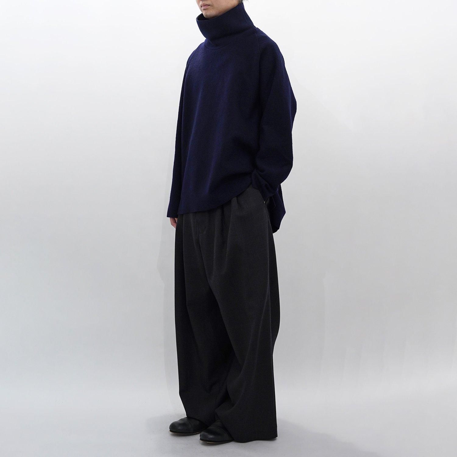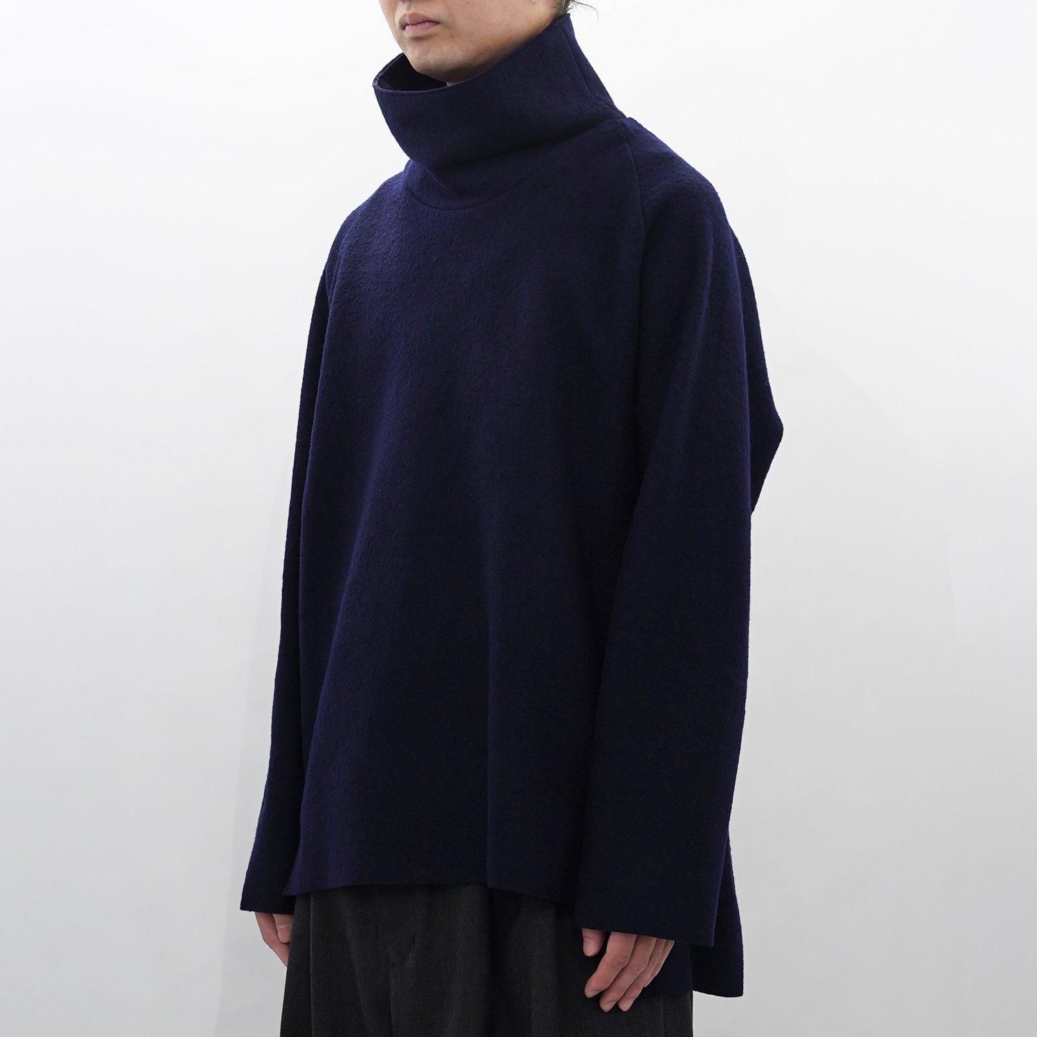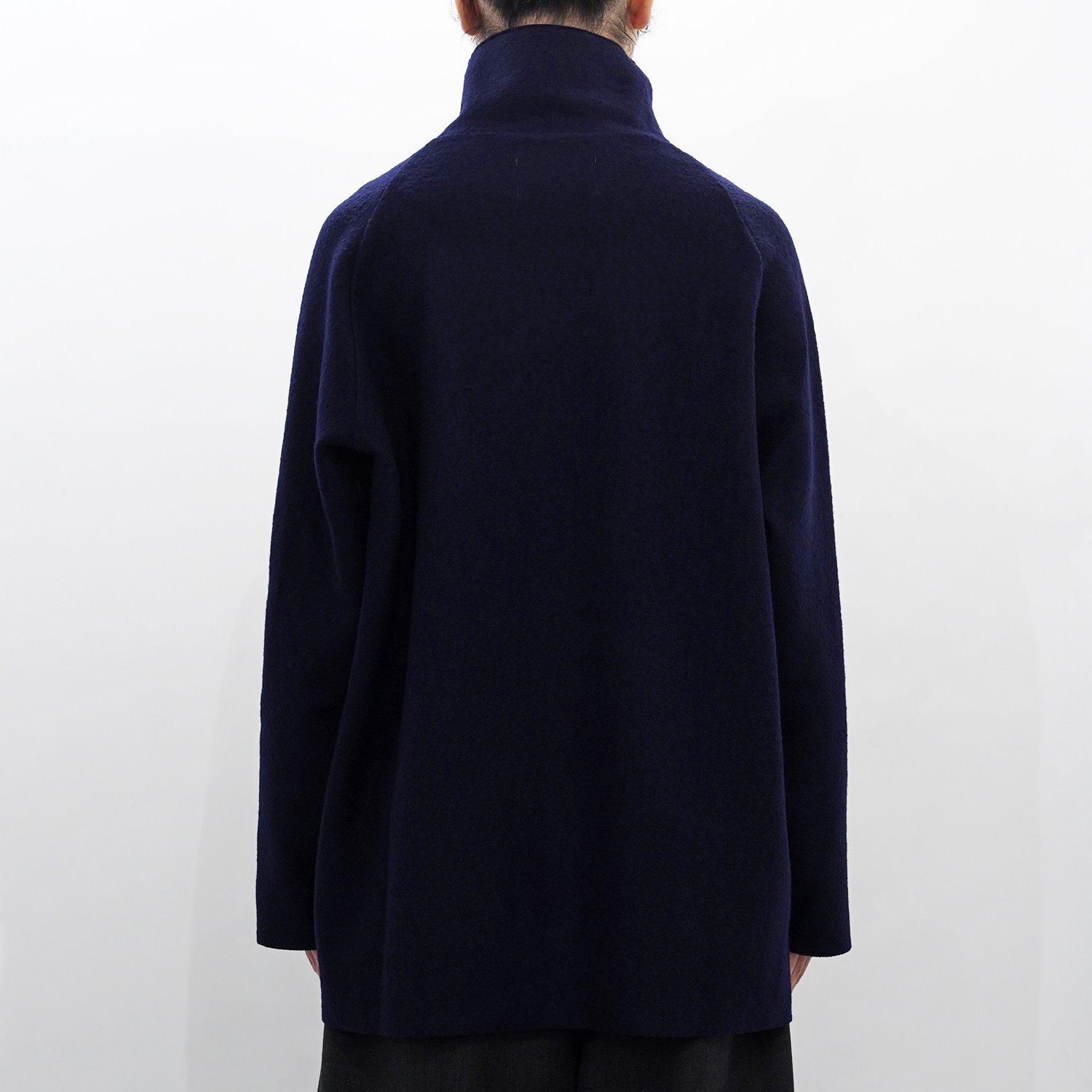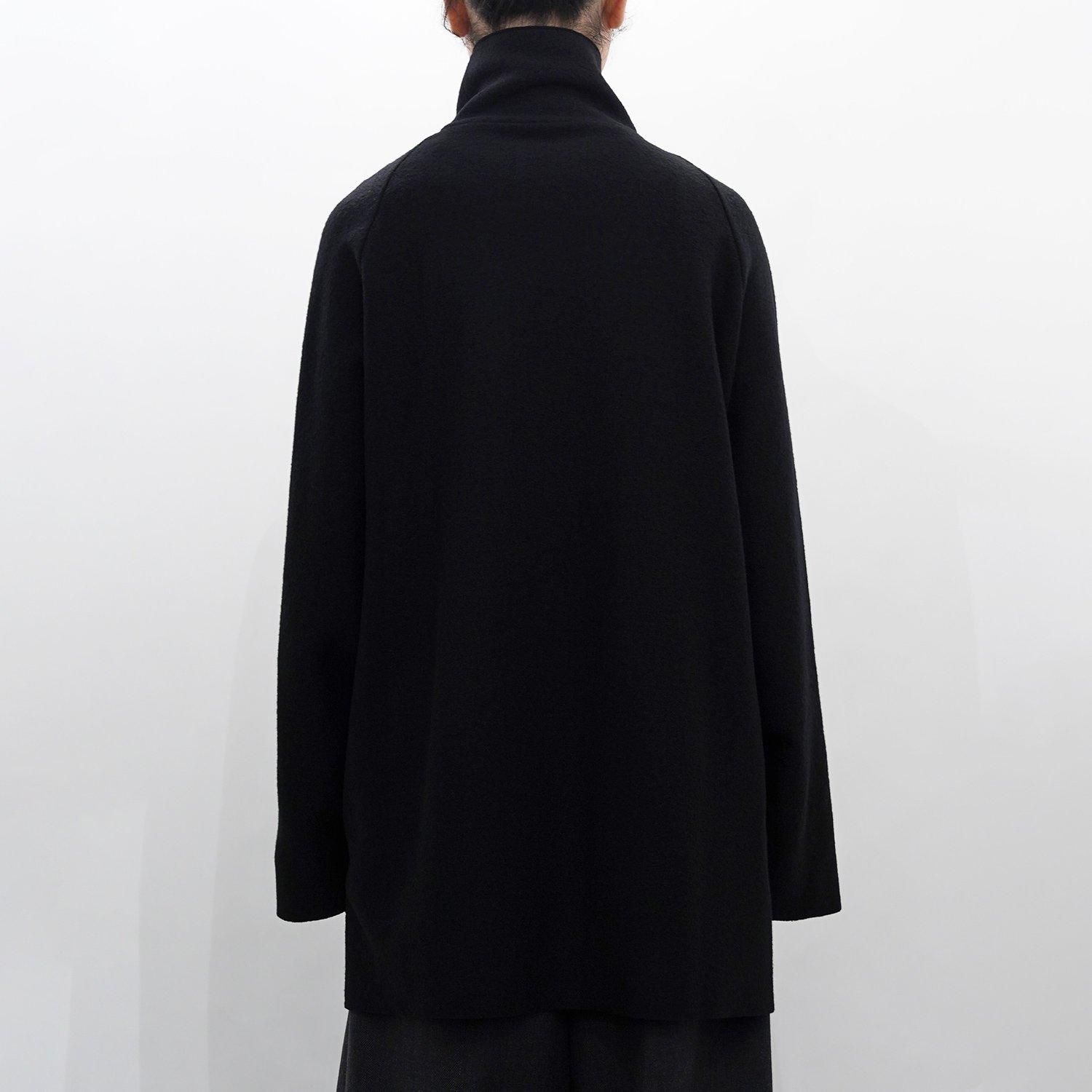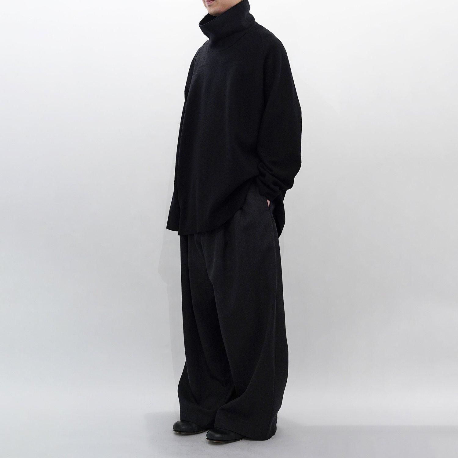 ボリュームのある少し緩めのハイネックデザインと、ラグランスリーブで全体的に