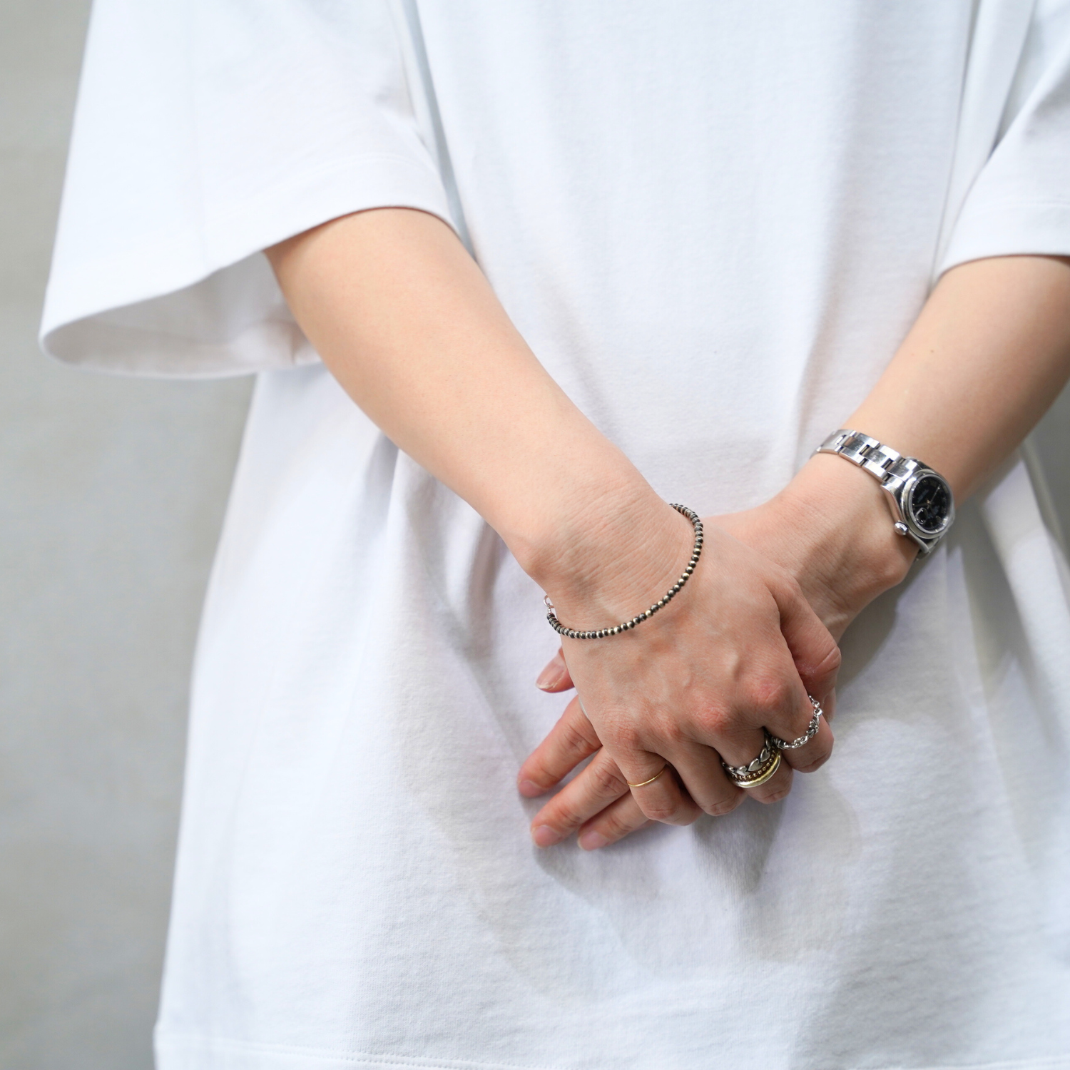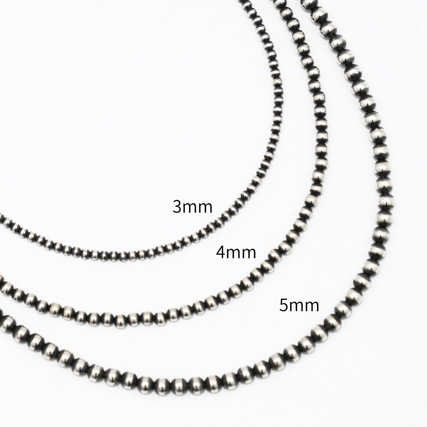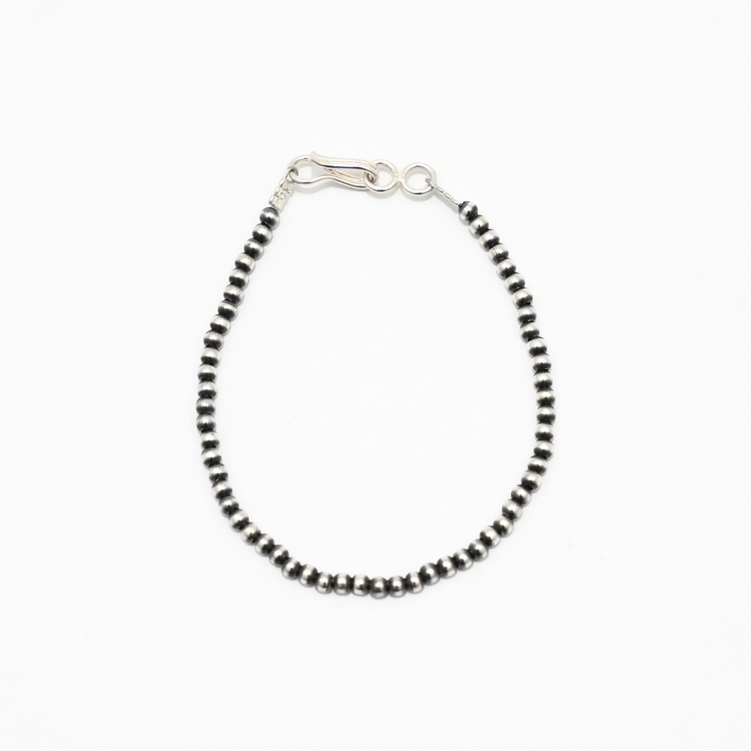半球状のシルバーを2つ繋げて1つのビーズとなるナバホパールは1つのネックレスやブレスレットを作るだけでも