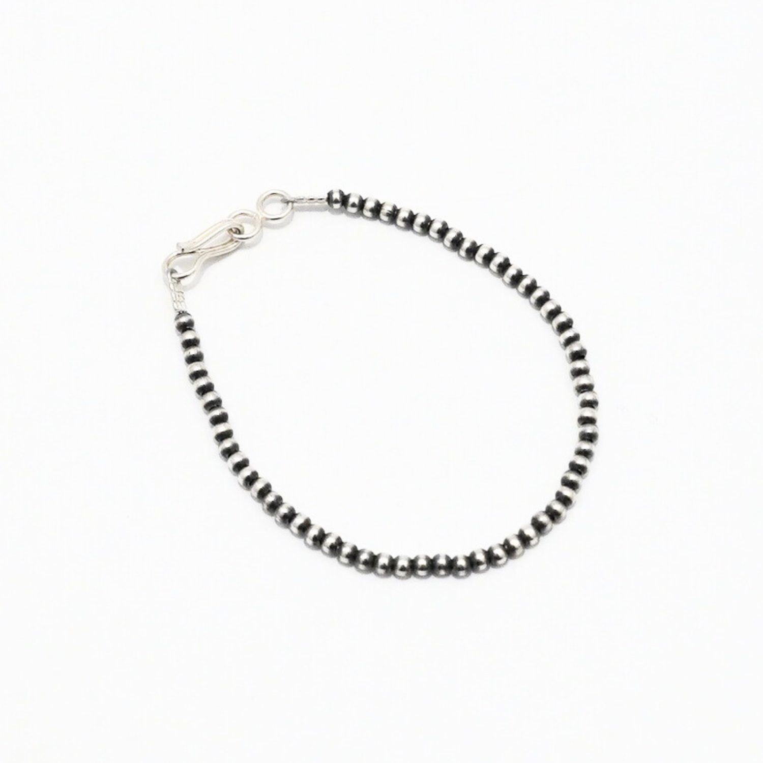 昔は「ホーガンビーズ」と呼ばれていたナバホ族の伝統的なシルバージュエリーは真珠のように美しい見た目から