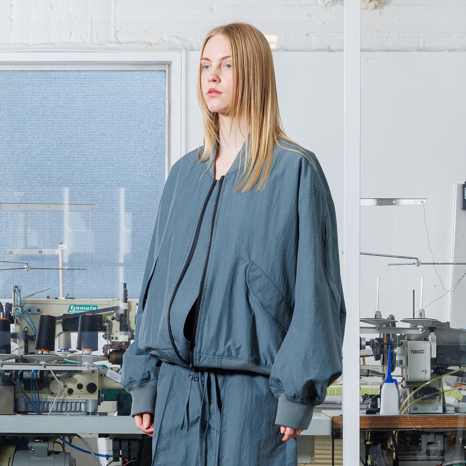 使用したシリーズ。染色によるシボ感も特徴で表情のあるコットン×ナイロン生地です。