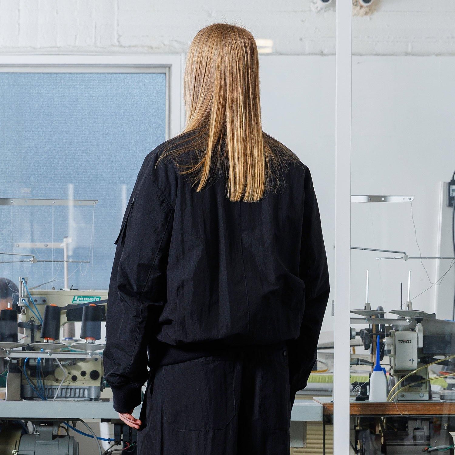 ブルゾンの裏地には伝統的な播州産の綿100%ストライプを使用。