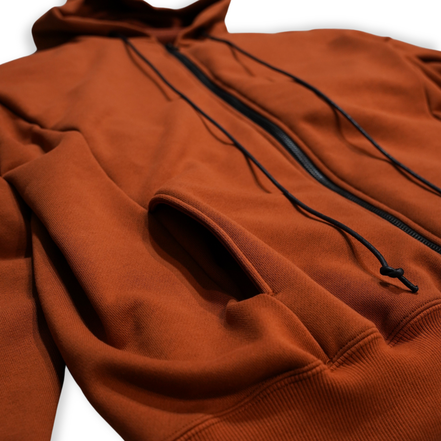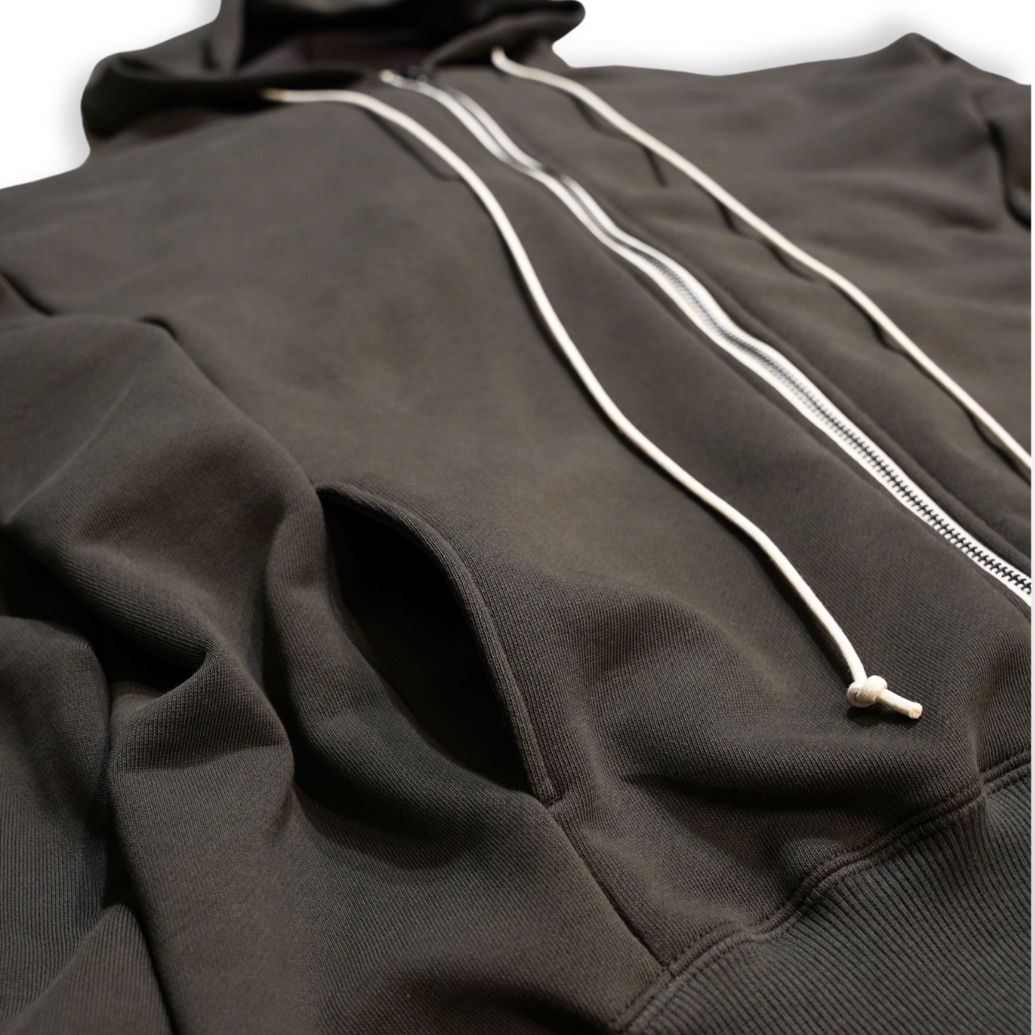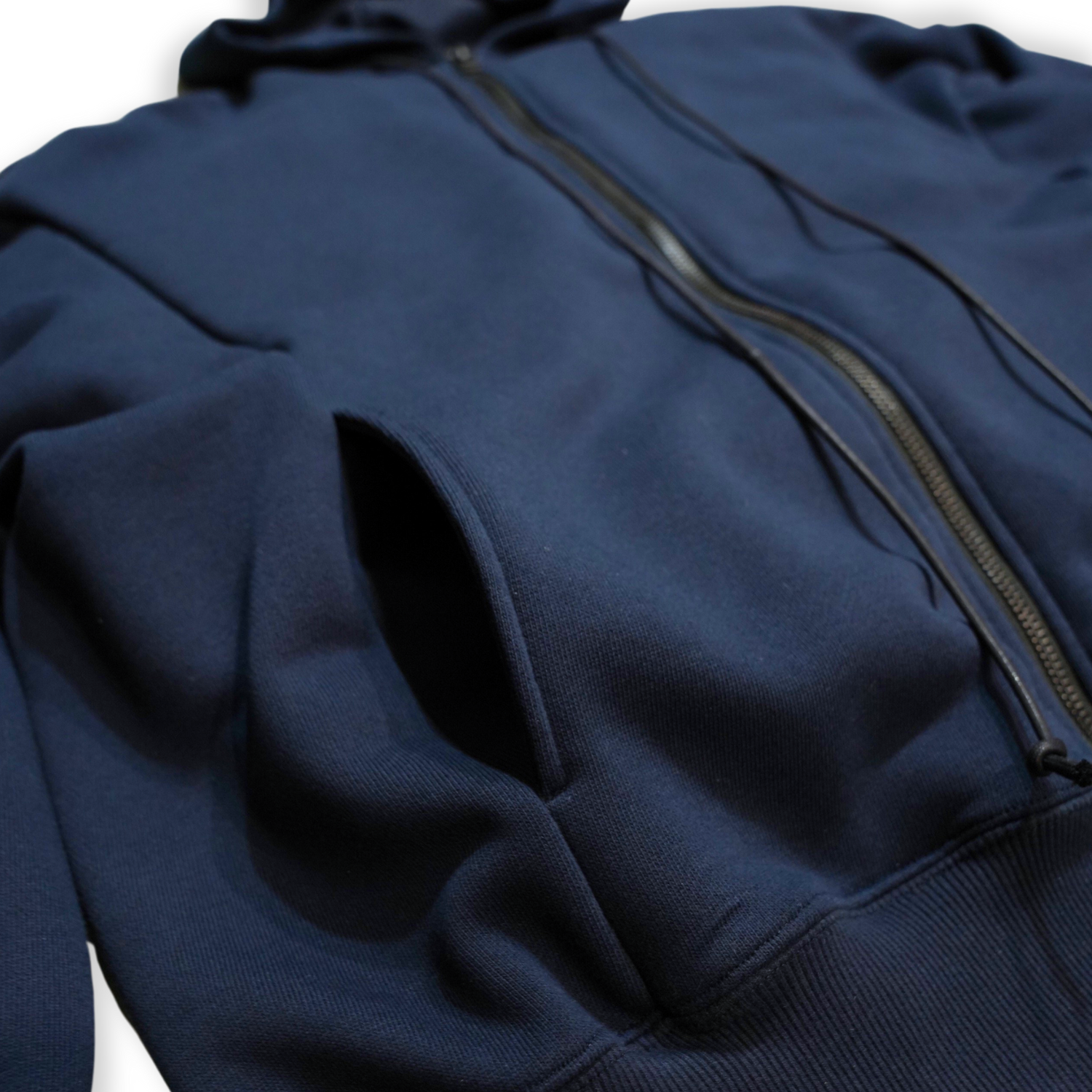 ZIPで羽織るスタイルも可能となり、より幅広いシーンで着やすいパーカーに仕上がっています。