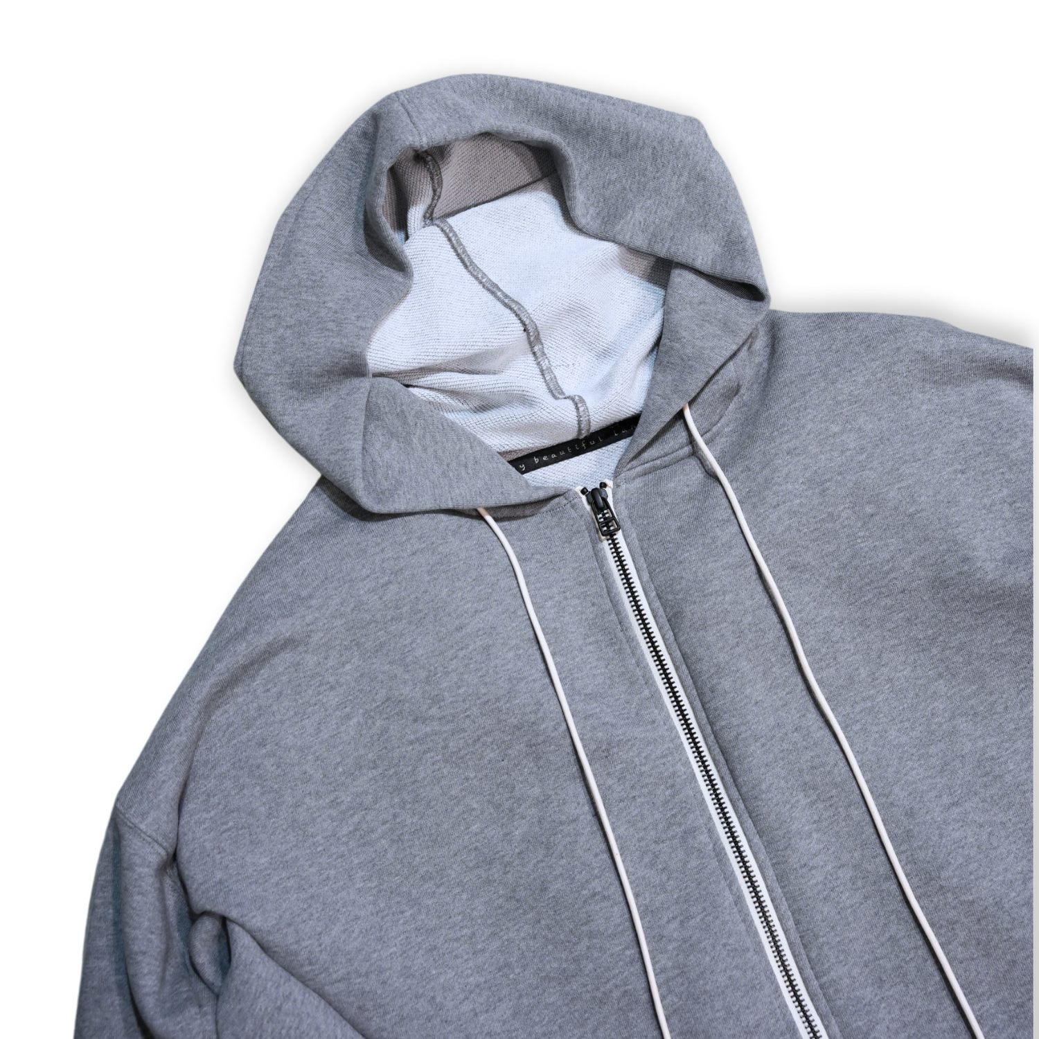 my beautiful landlet 定番のルーズシルエットと、スウィッチングの切り替えしデザインがアクセントになっているZIPフーディー。