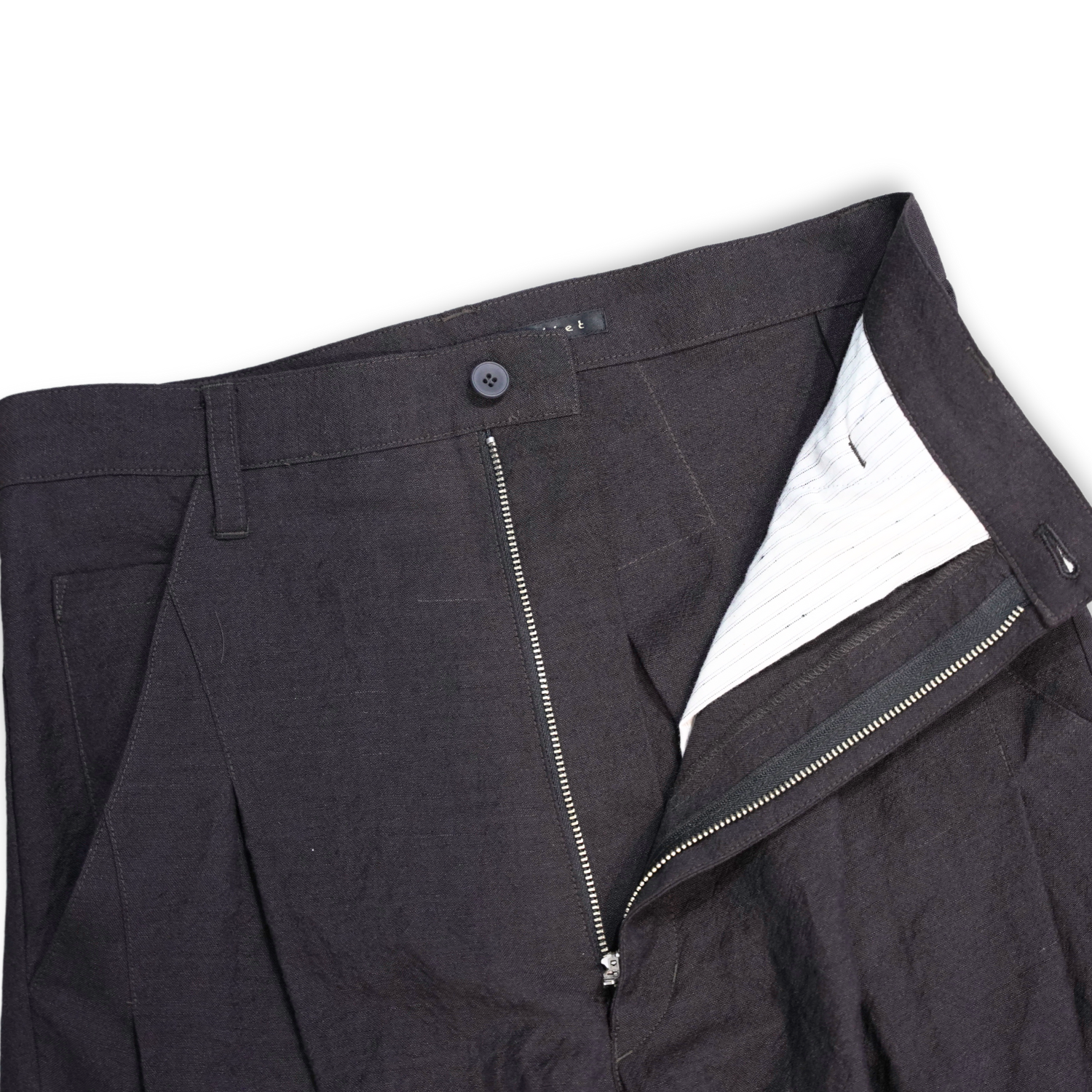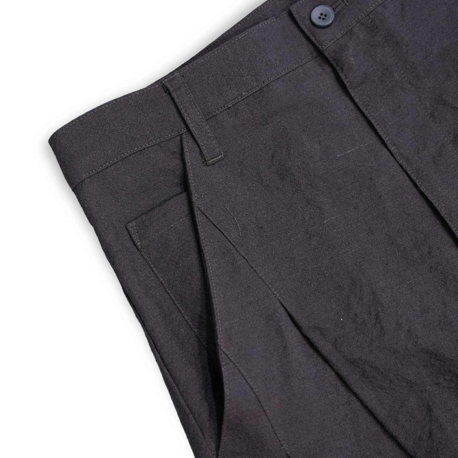 ウールリネン生地に加工を施す事で生まれる表面のシボ感とドライなタッチは、