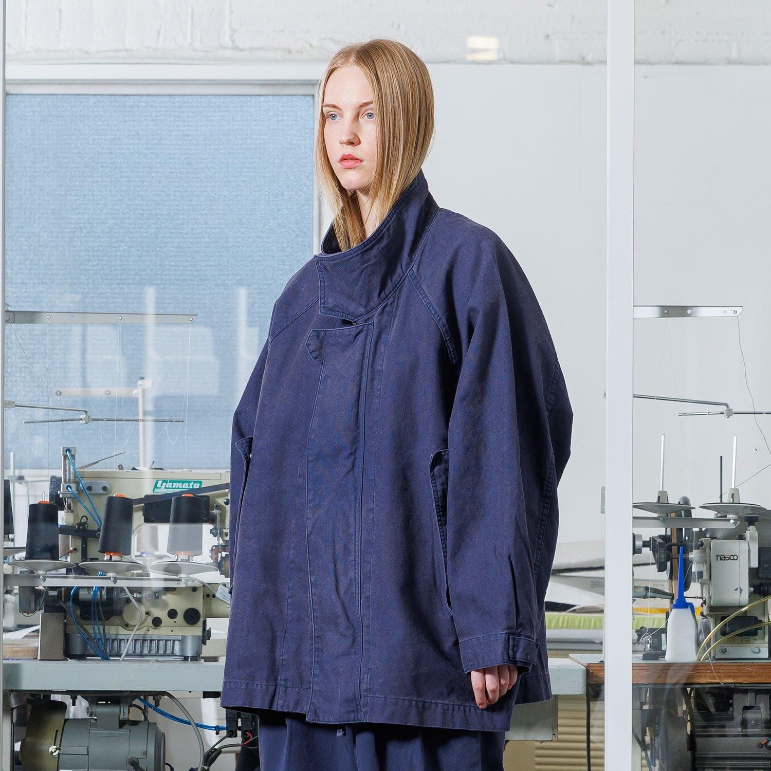 コットン、10番手のヘビーオックスを使用したシリーズ。製品後に硫化染め&バイオウォッシュ