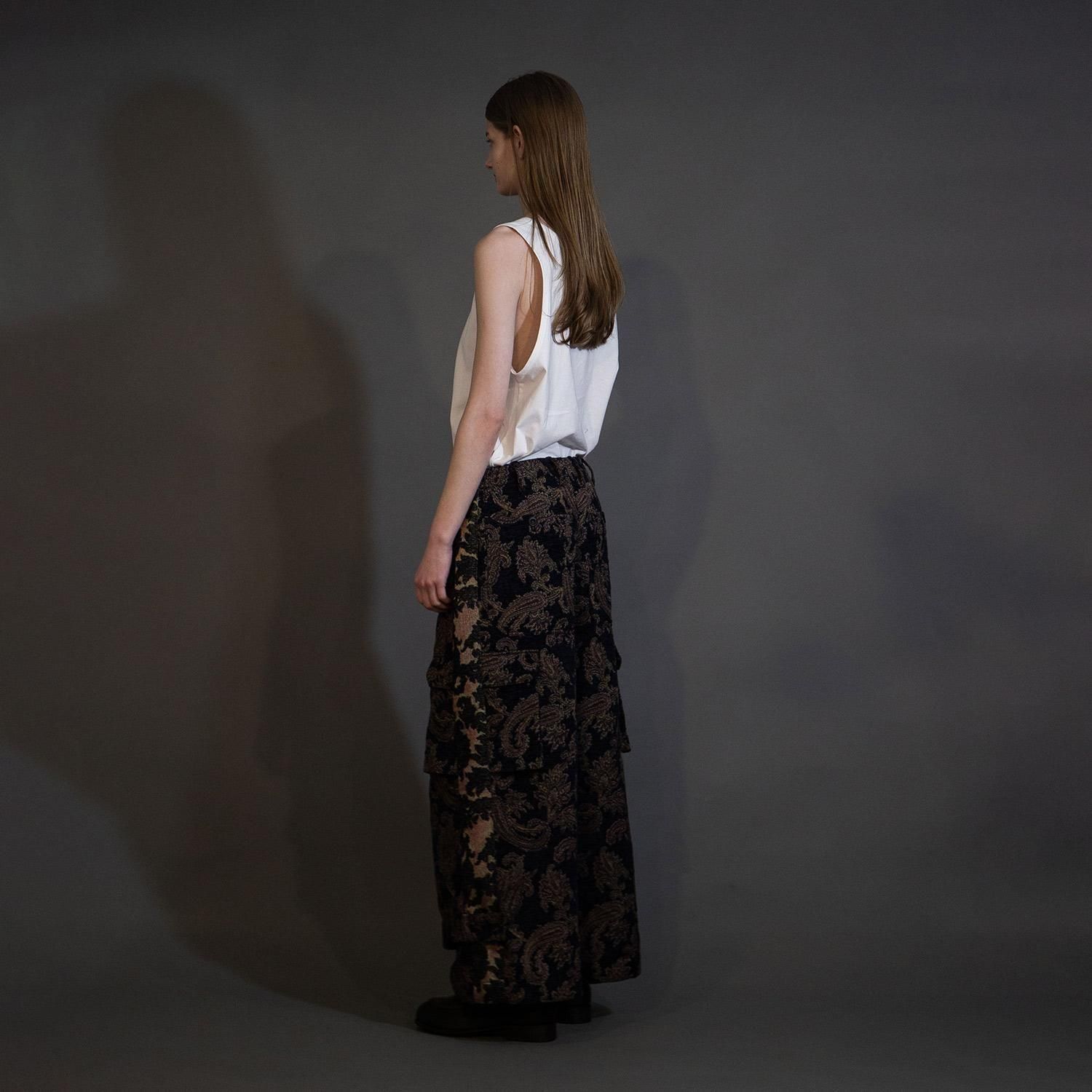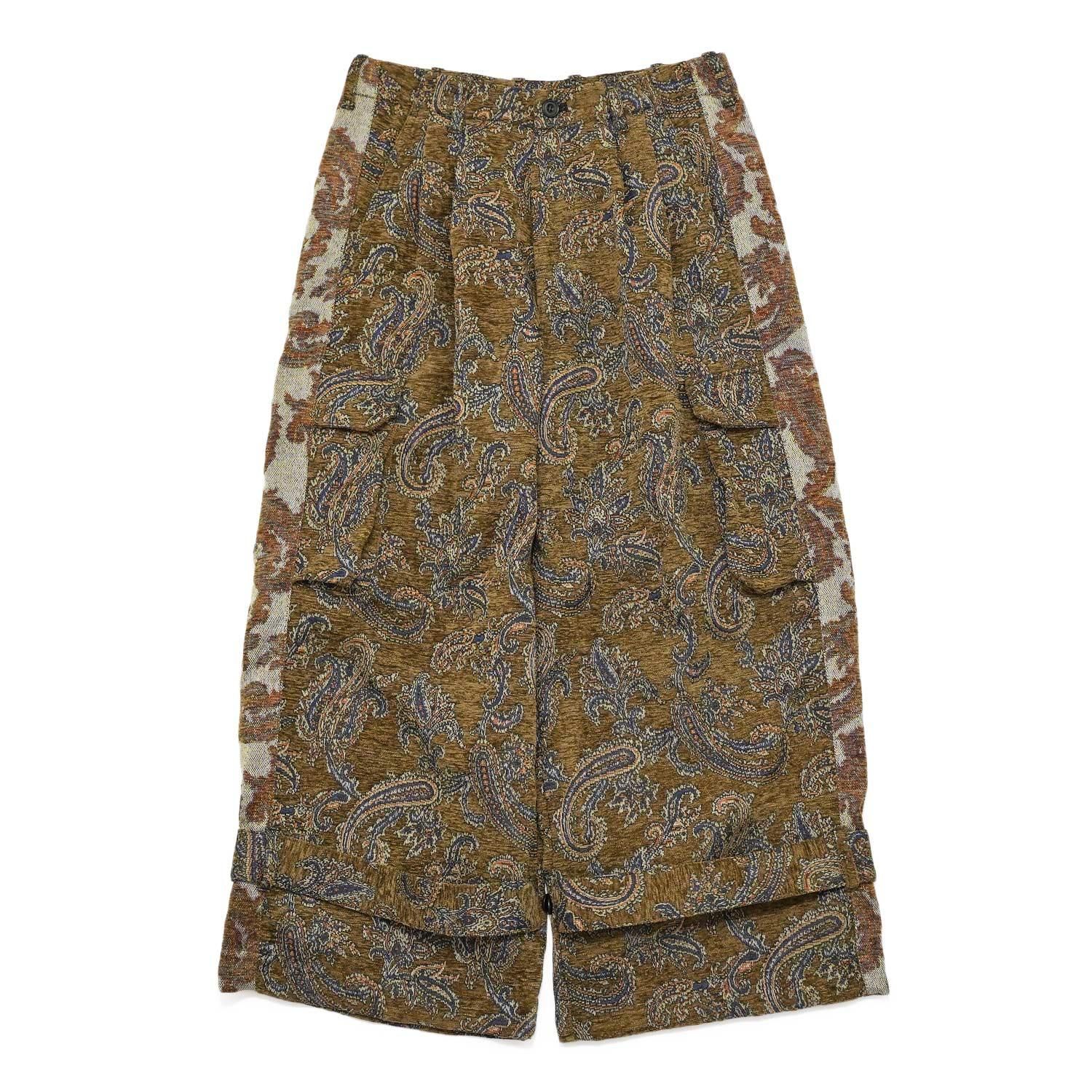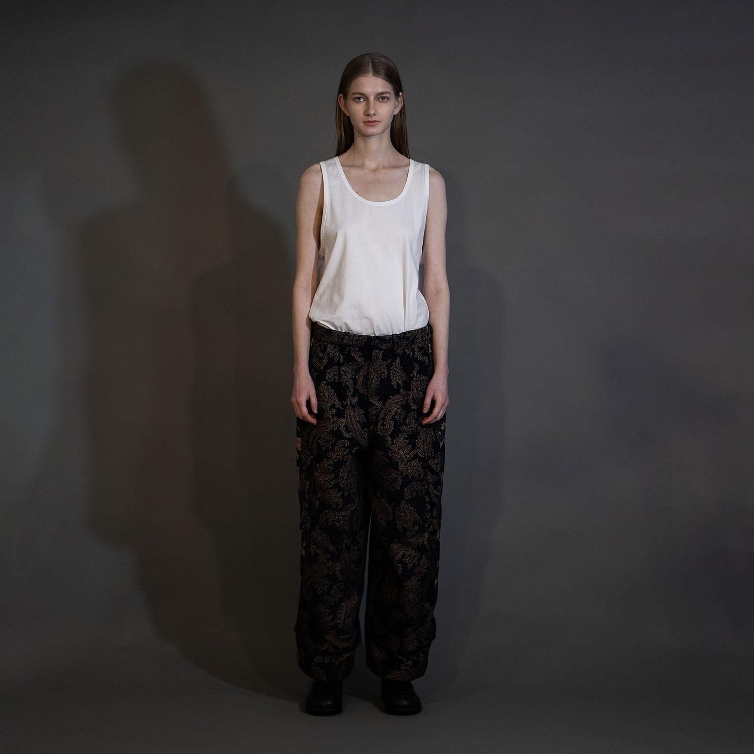 こちらのカーゴパンツは、同じくシェニールヤーンジャガードを反転して裏使いにし、両サイドで