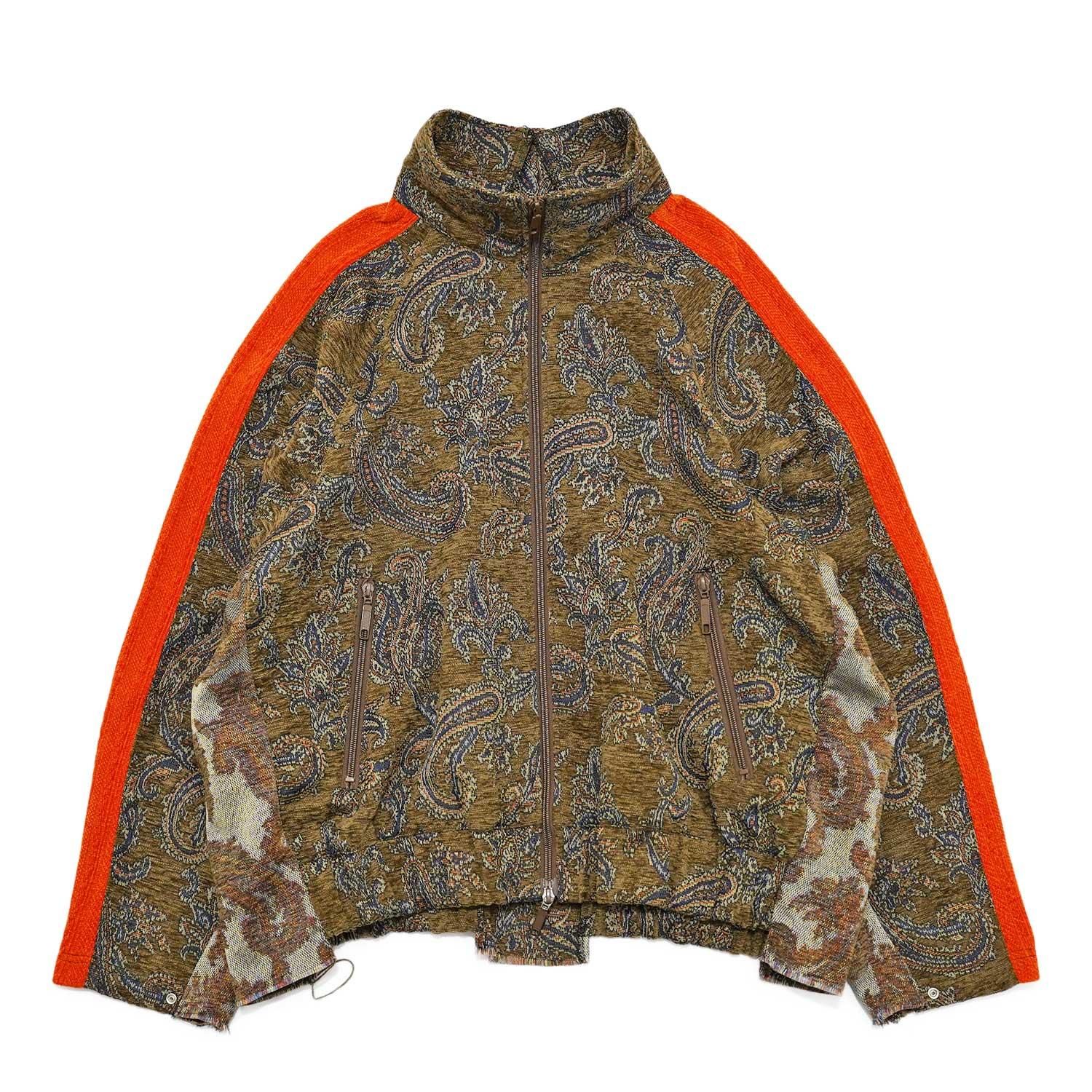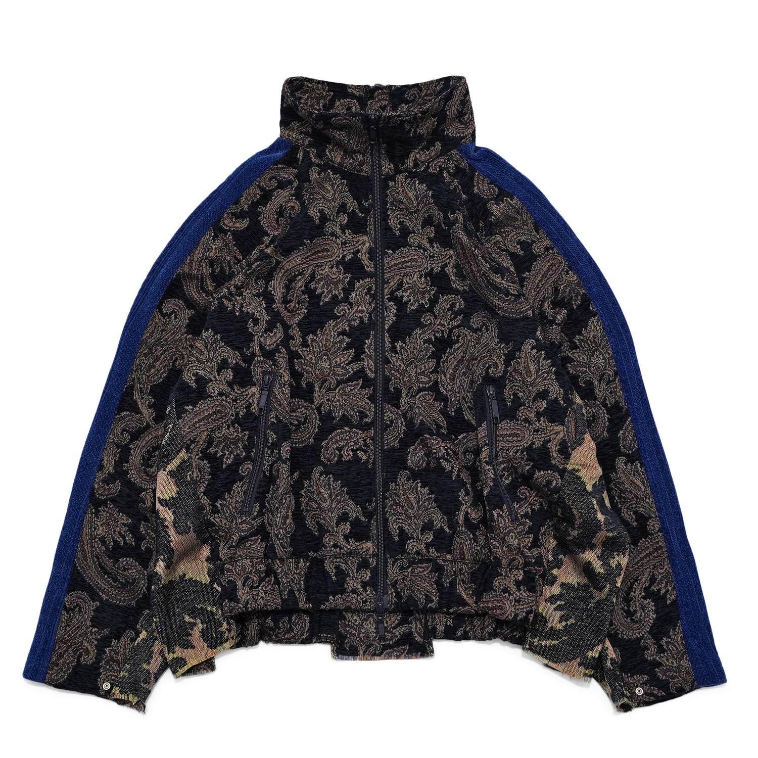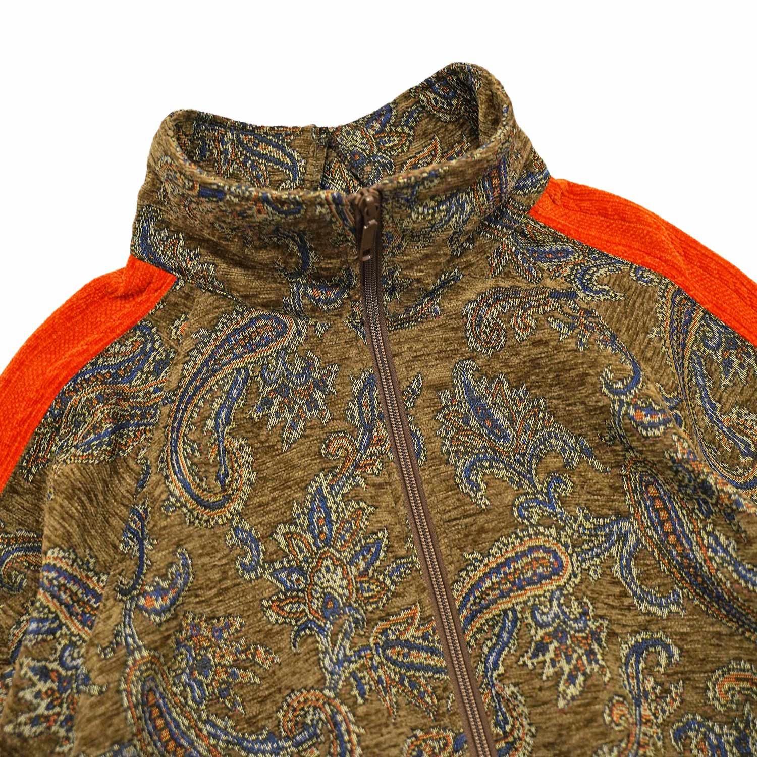 トラックジャケットには、ゴブランシェニール織を掛け合わせ、さらにジャガード生地を後身頃の中心と、