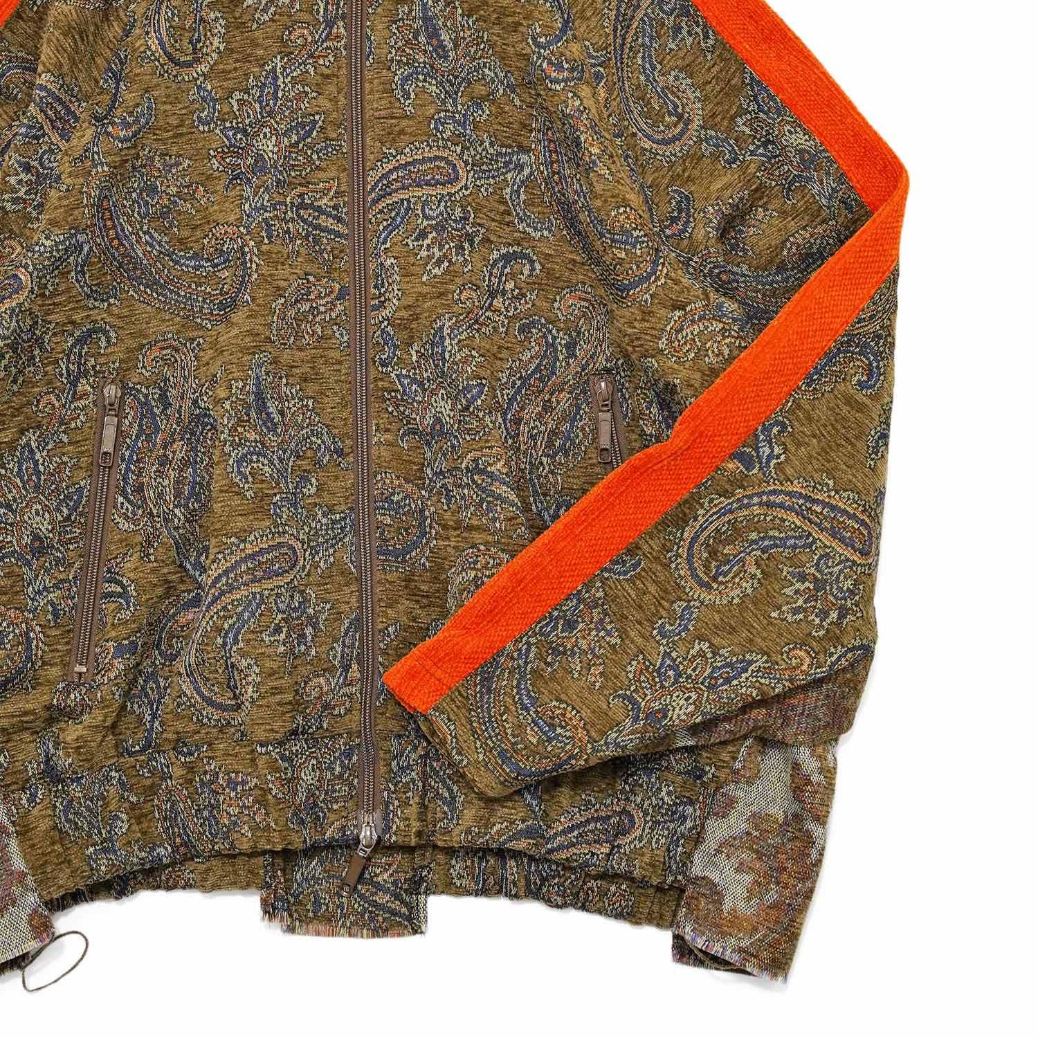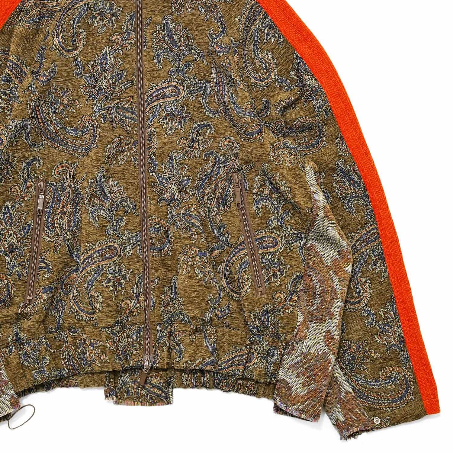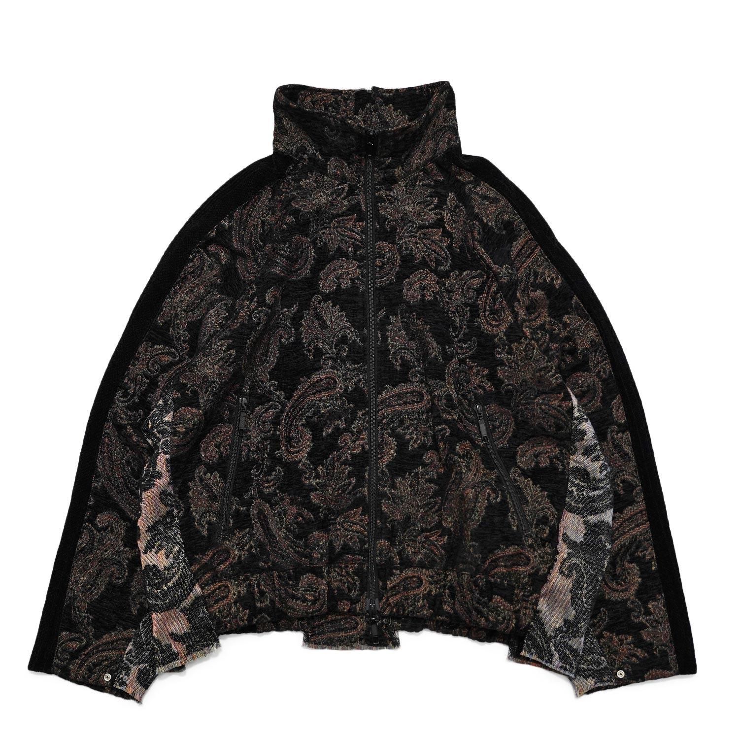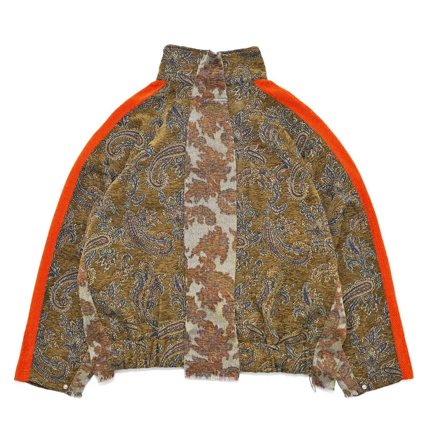 トラックジャケットには、ゴブランシェニール織を掛け合わせ、さらにジャガード生地を後身頃の中心と、
