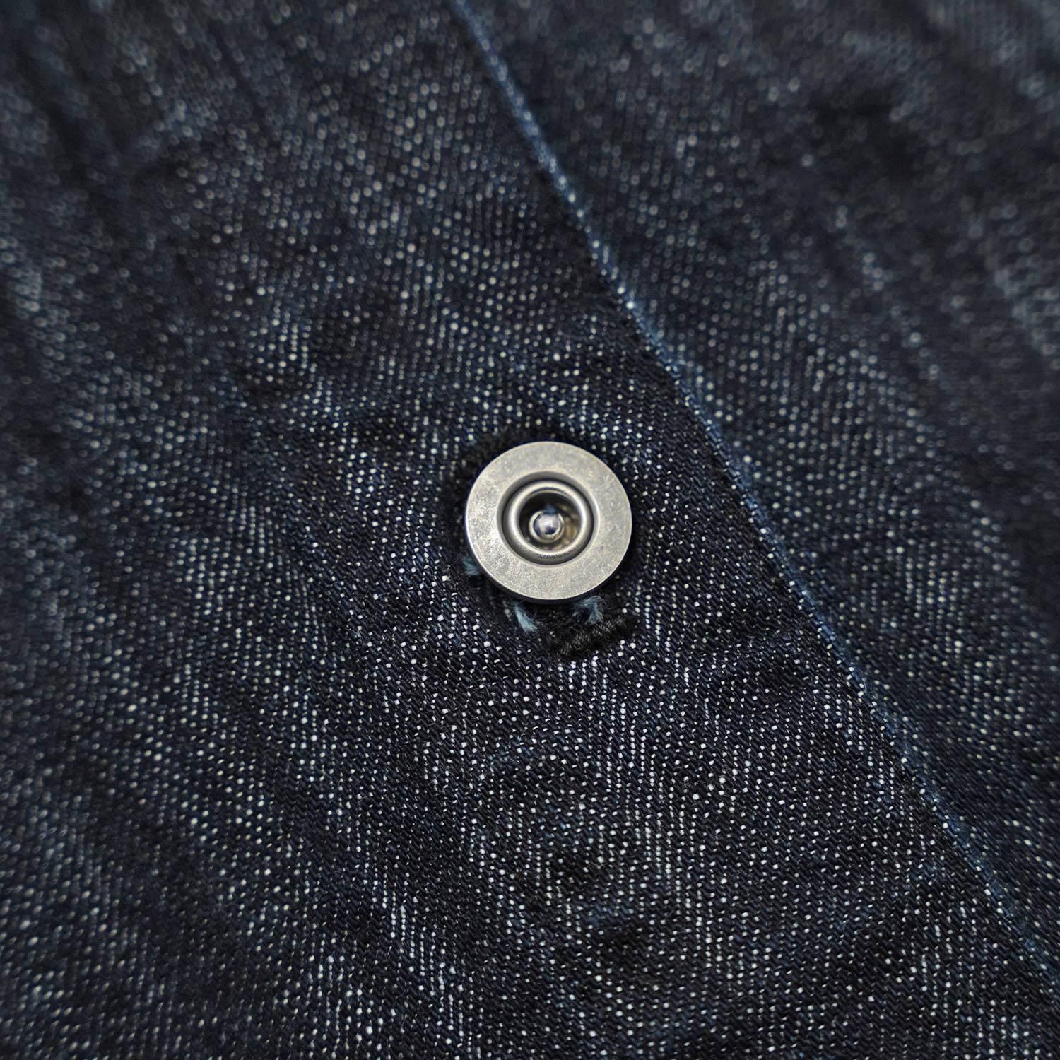 ランダムクランチ織(ザラ織)13ozデニムシリーズ。素材の表情を生かしたナチュラルウォッシュと、織目を強調したユーズドウォッシュの2色展開です。ザラ織の特性上、織り傷、ムラや節糸、ネップが生じますが、素材の味としてご理解下さい。全ての工程を岡山の職人によってフィニッシュしています。