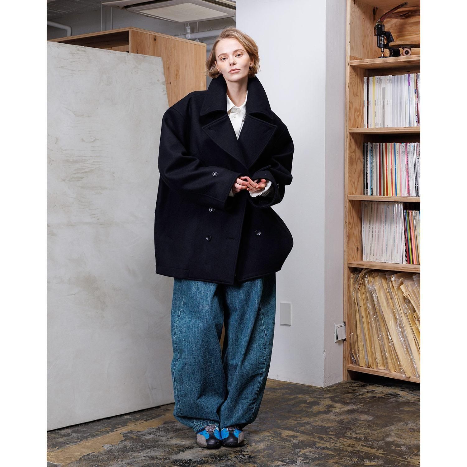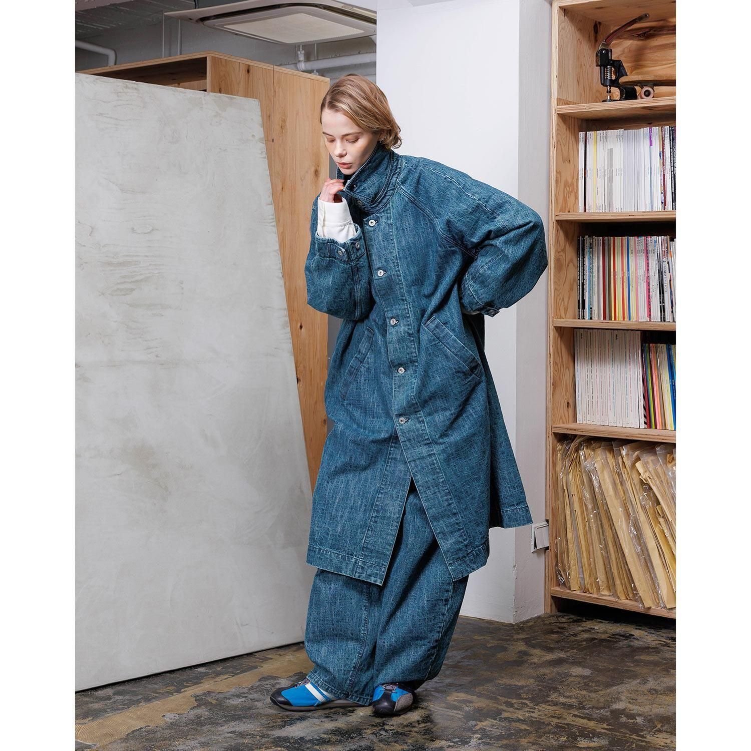 織目を強調したユーズドウォッシュの2色から展開。ザラ織の特性上、織り傷、ムラや節糸、ネップが生じ、
