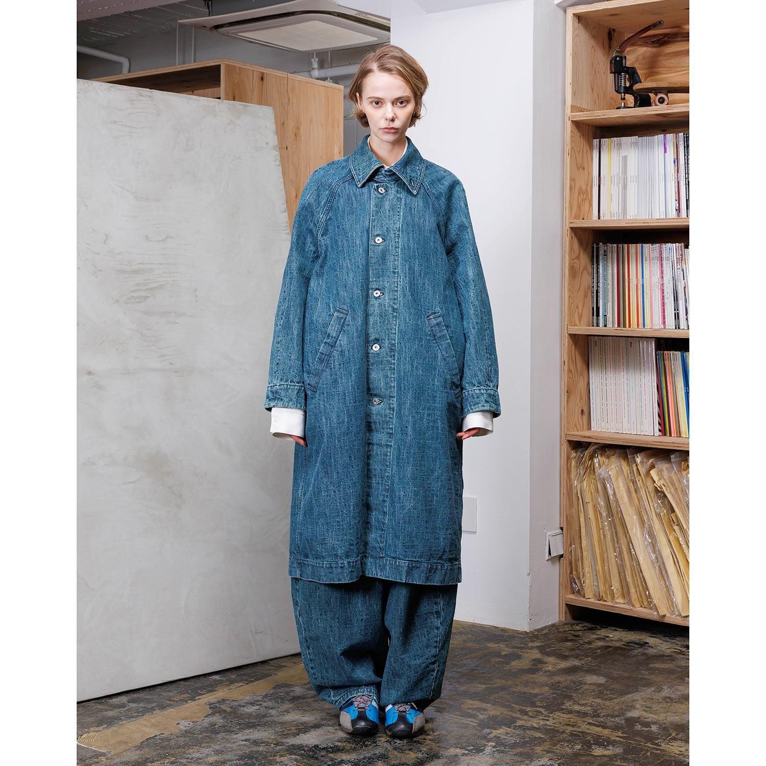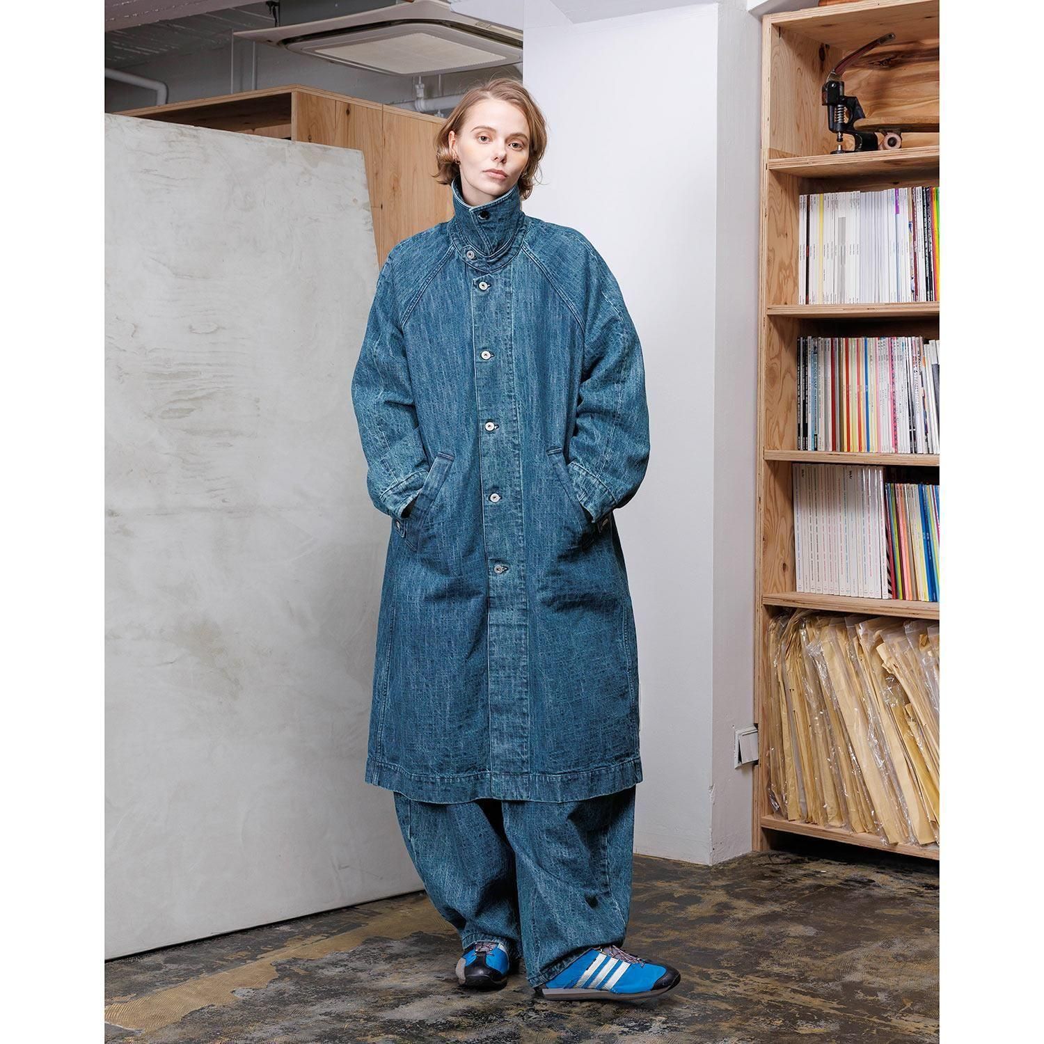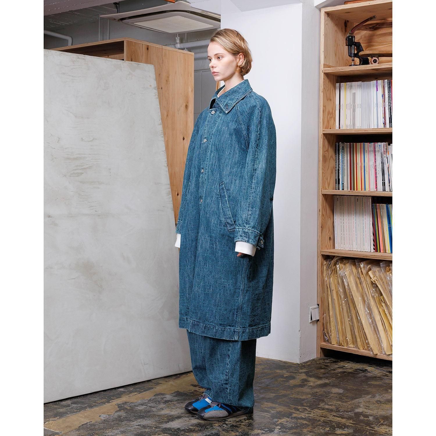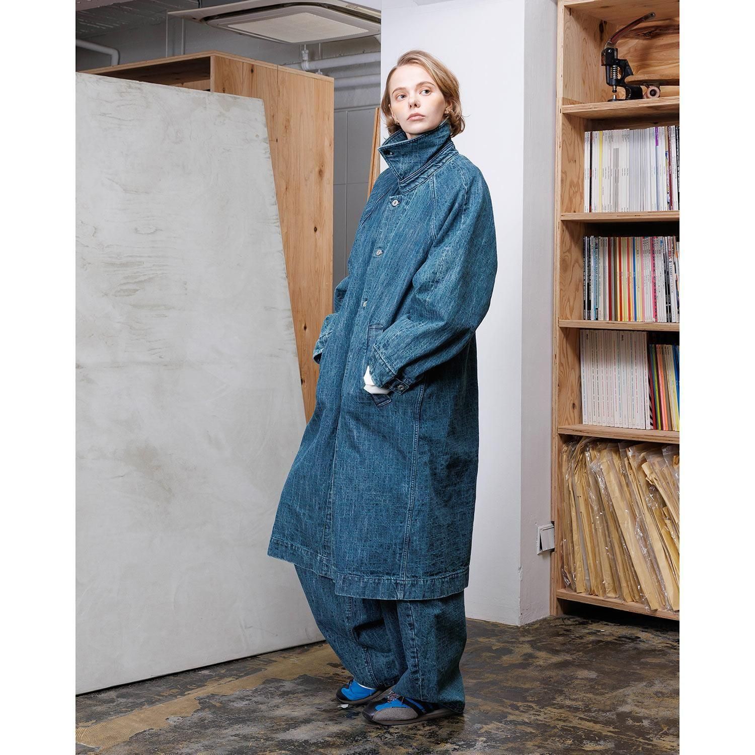 織目を強調したユーズドウォッシュの2色から展開。ザラ織の特性上、織り傷、ムラや節糸、ネップが生じ、
