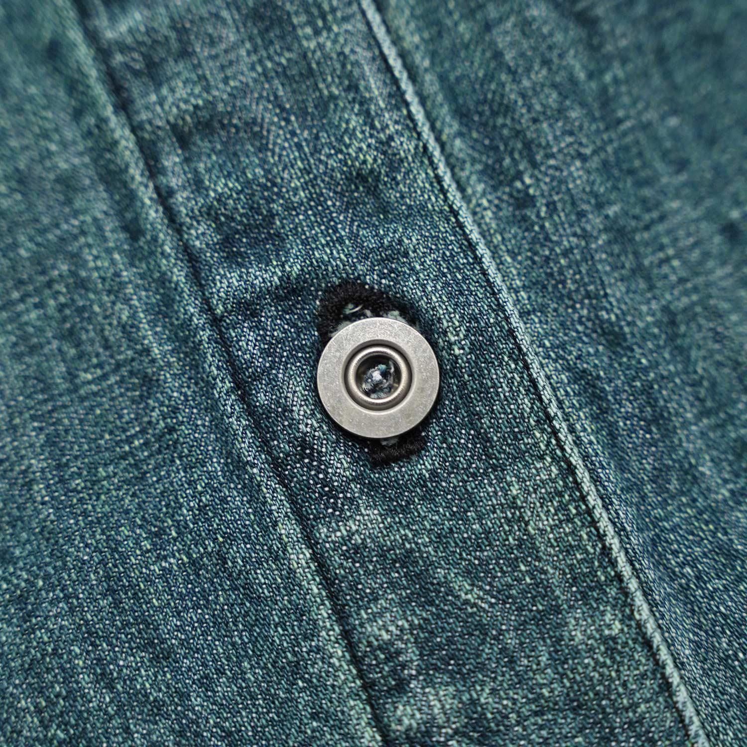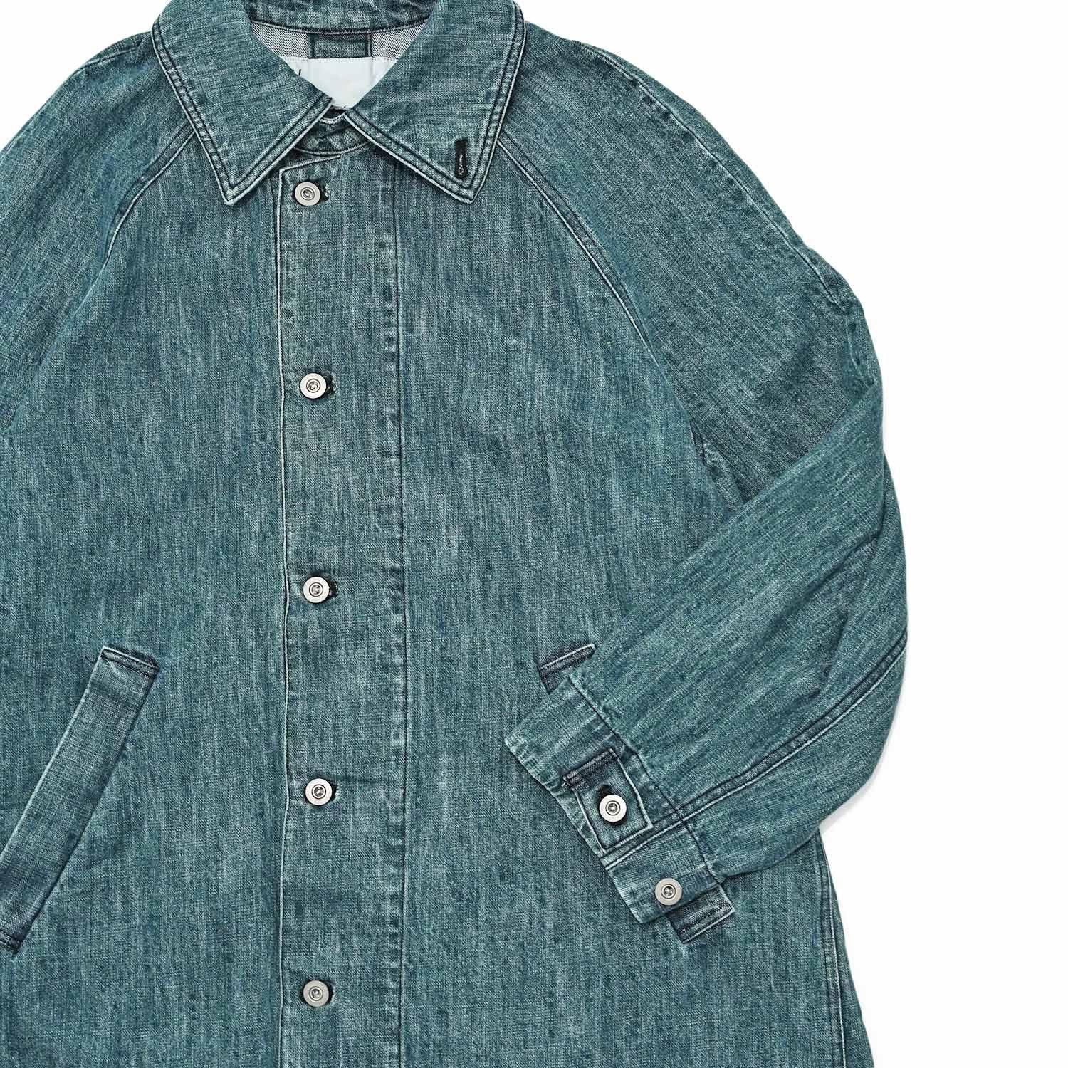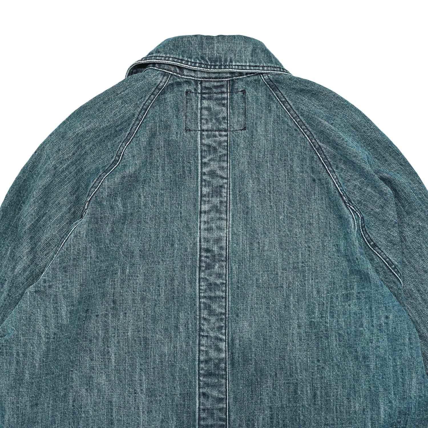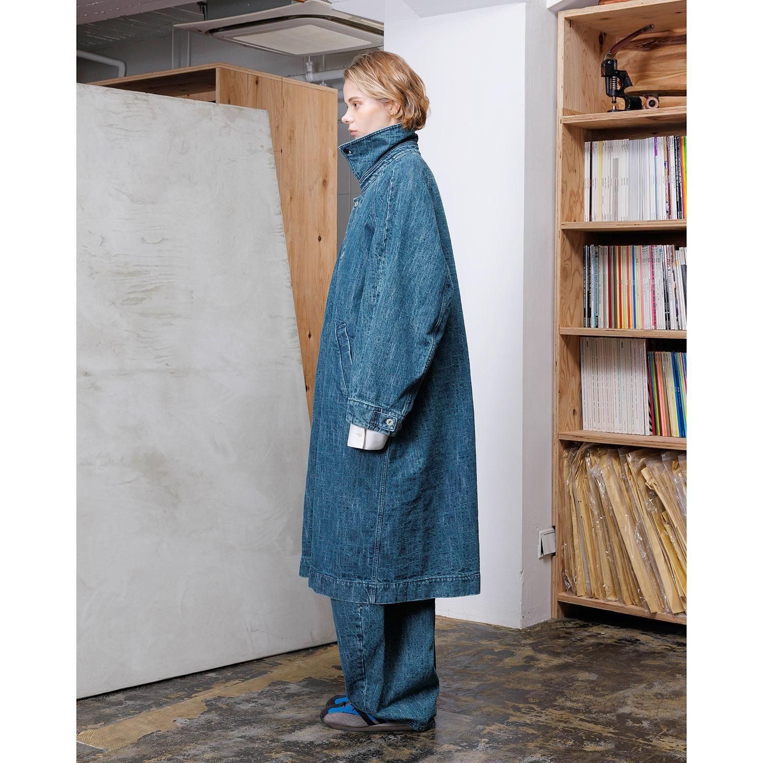 織目を強調したユーズドウォッシュの2色から展開。ザラ織の特性上、織り傷、ムラや節糸、ネップが生じ、