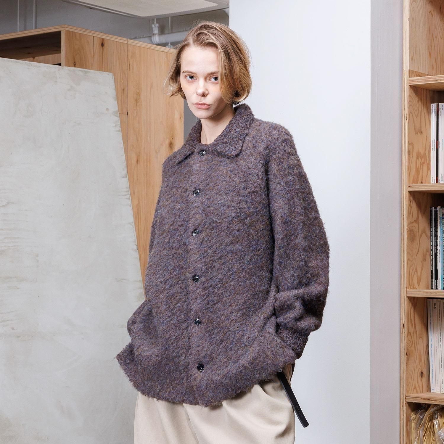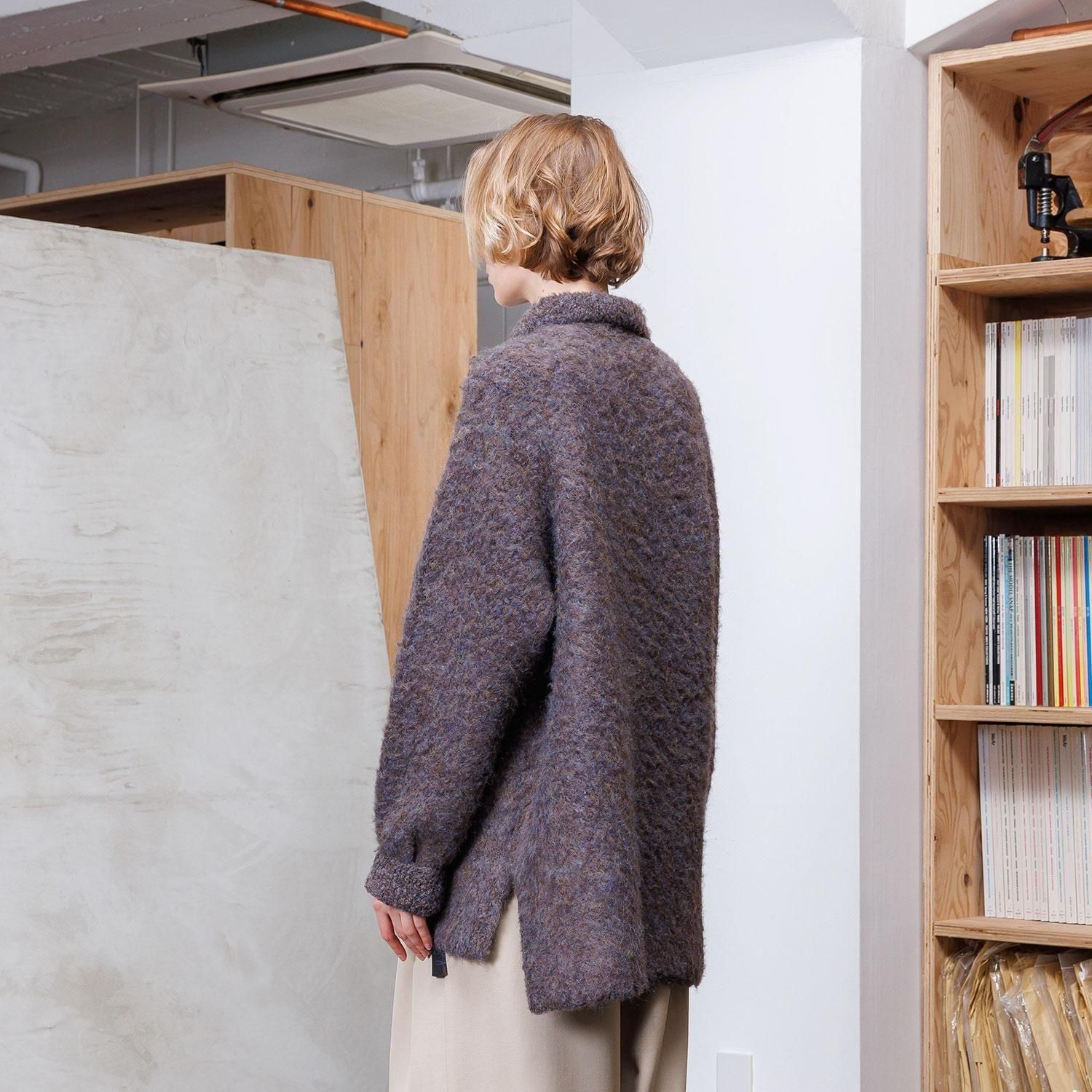 用いた起毛機で1枚1枚手作業でふんわりと仕上げたニットシリーズ。