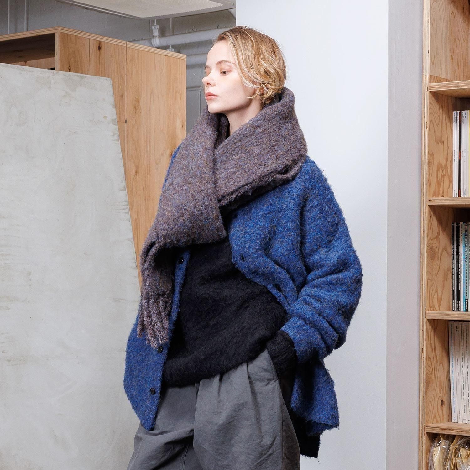 用いた起毛機で1枚1枚手作業でふんわりと仕上げたニットシリーズ。