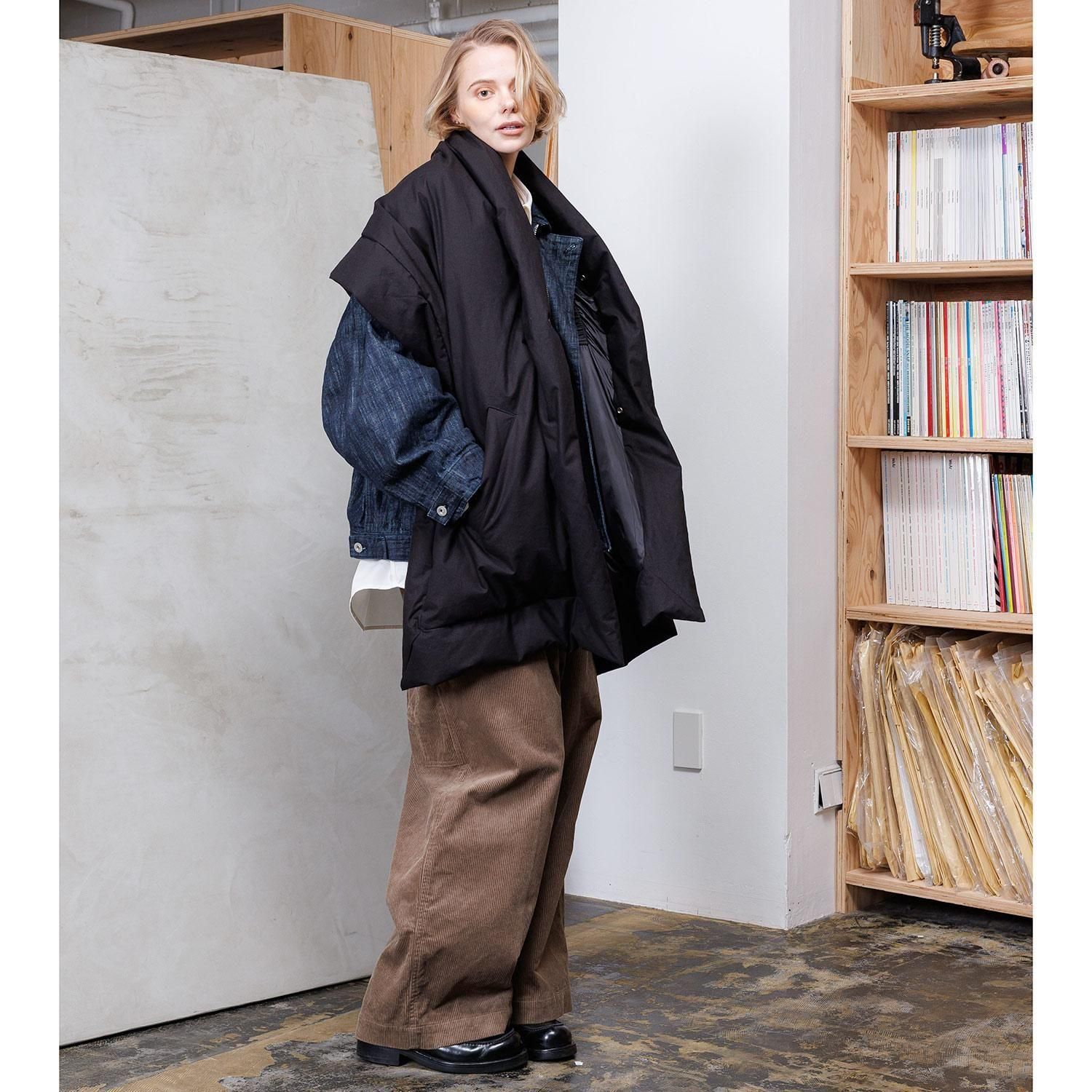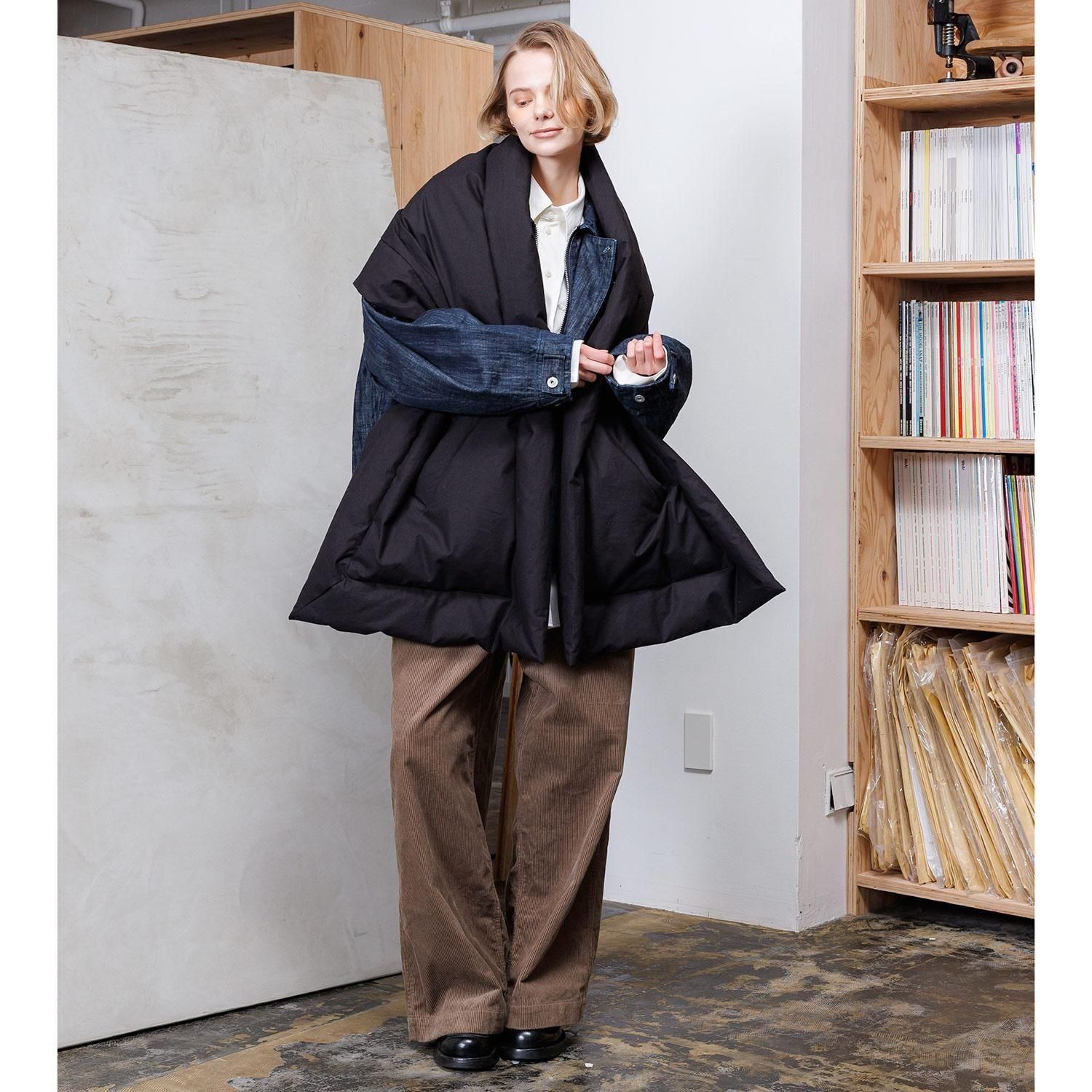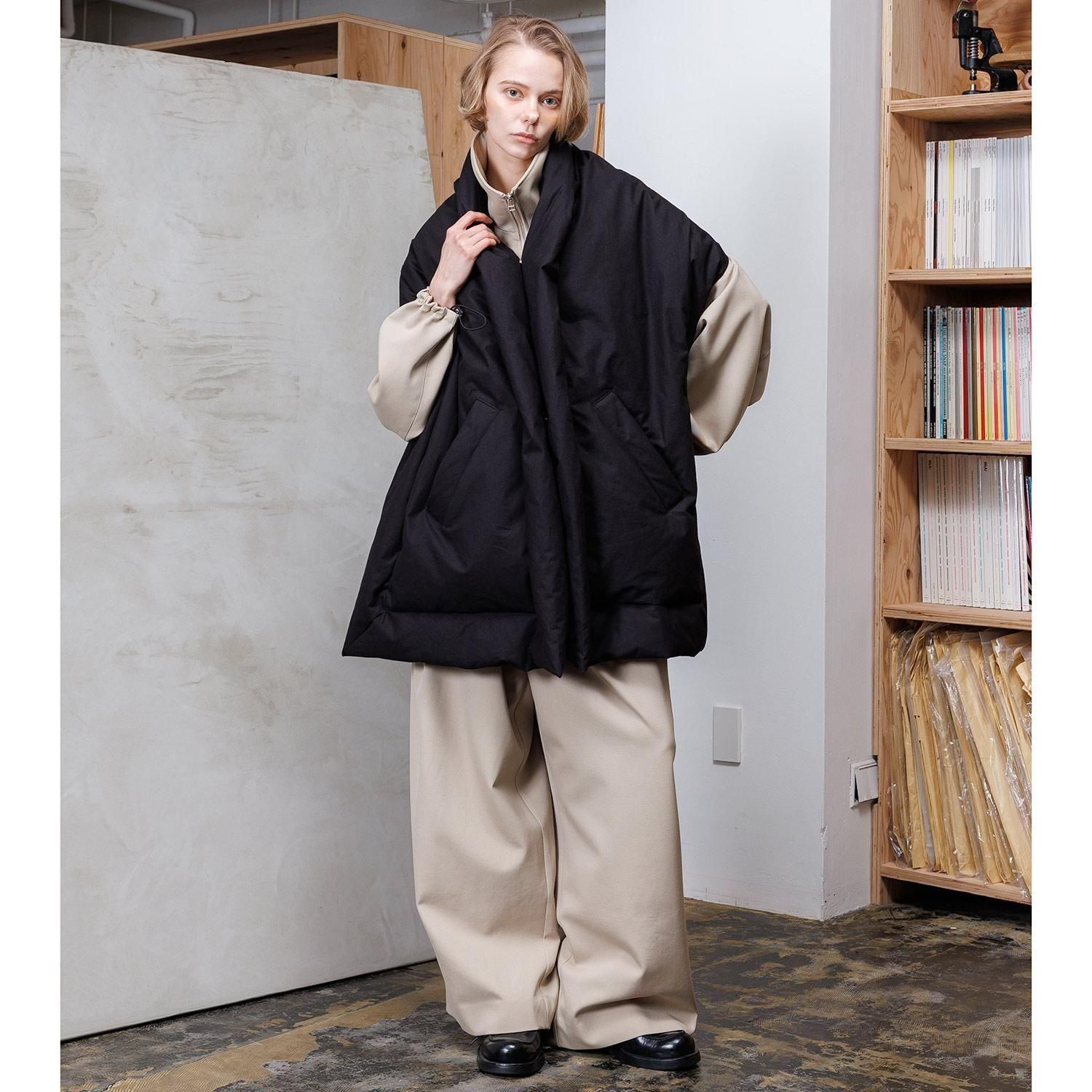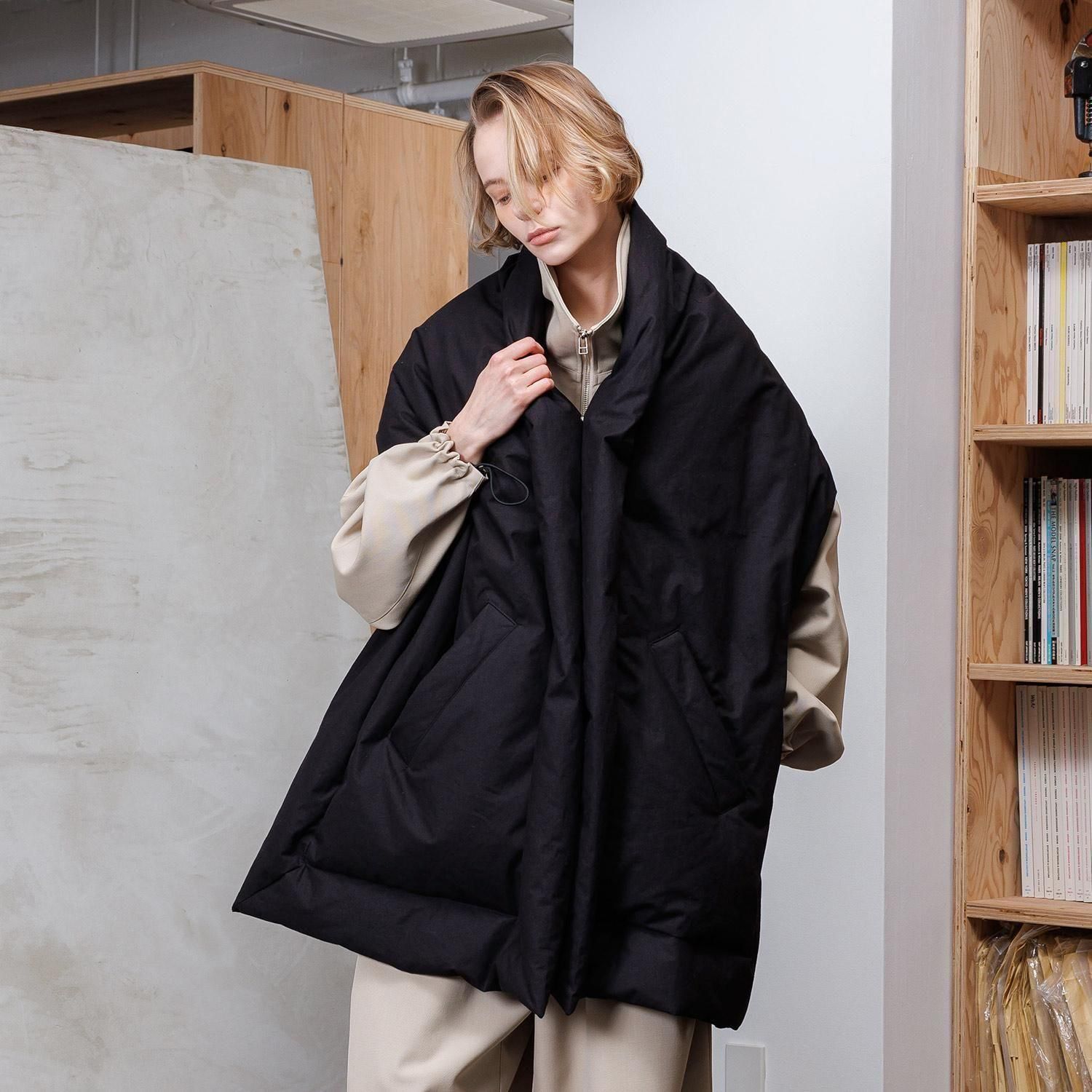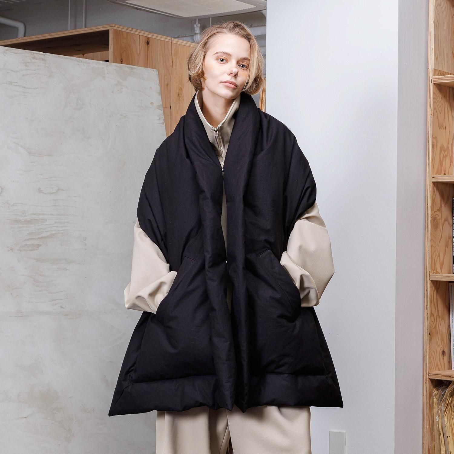 モコモコと布団のような存在感のあるボリュームがインパクトある大判ダウンストールです。