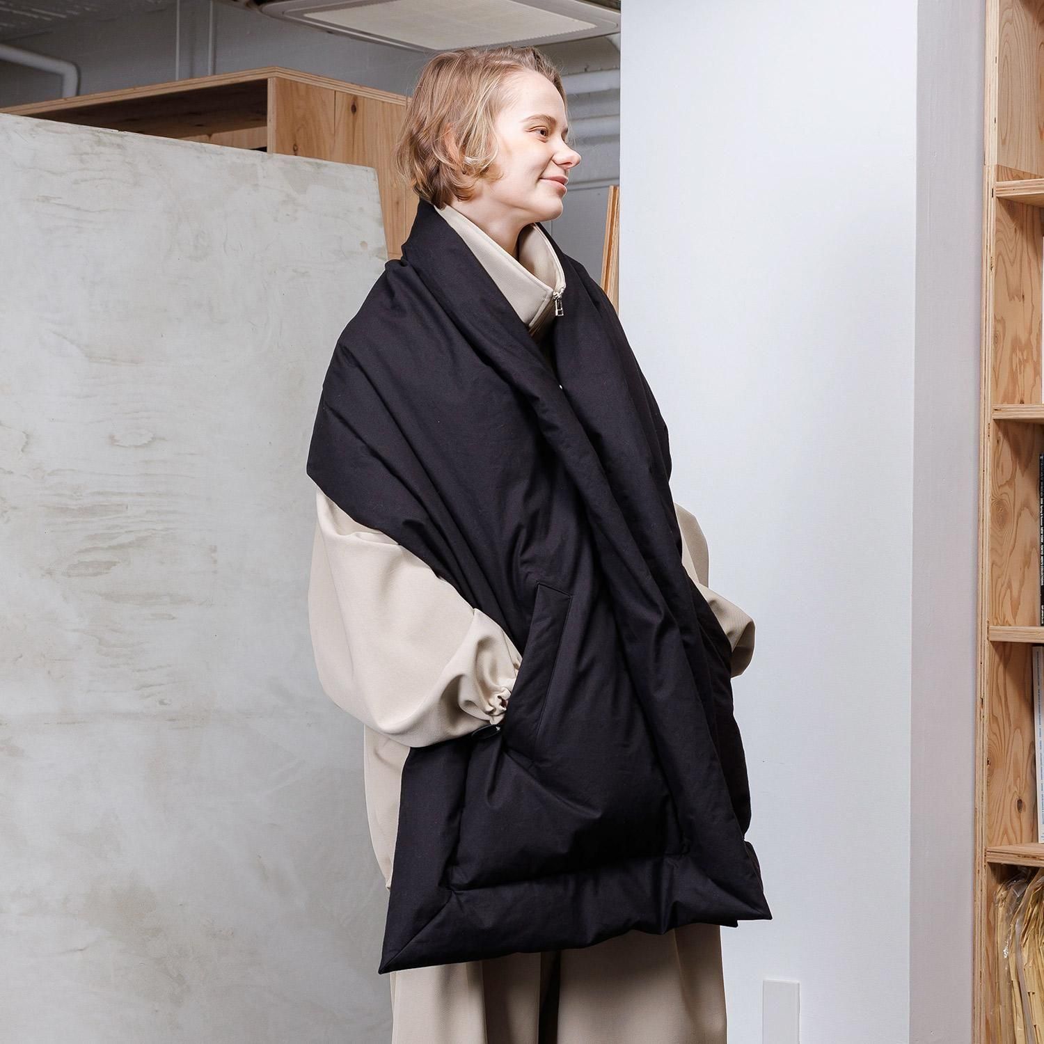 軽くて防寒性も高く、デザイン性にも優れていますので、肩に羽織るだけでも