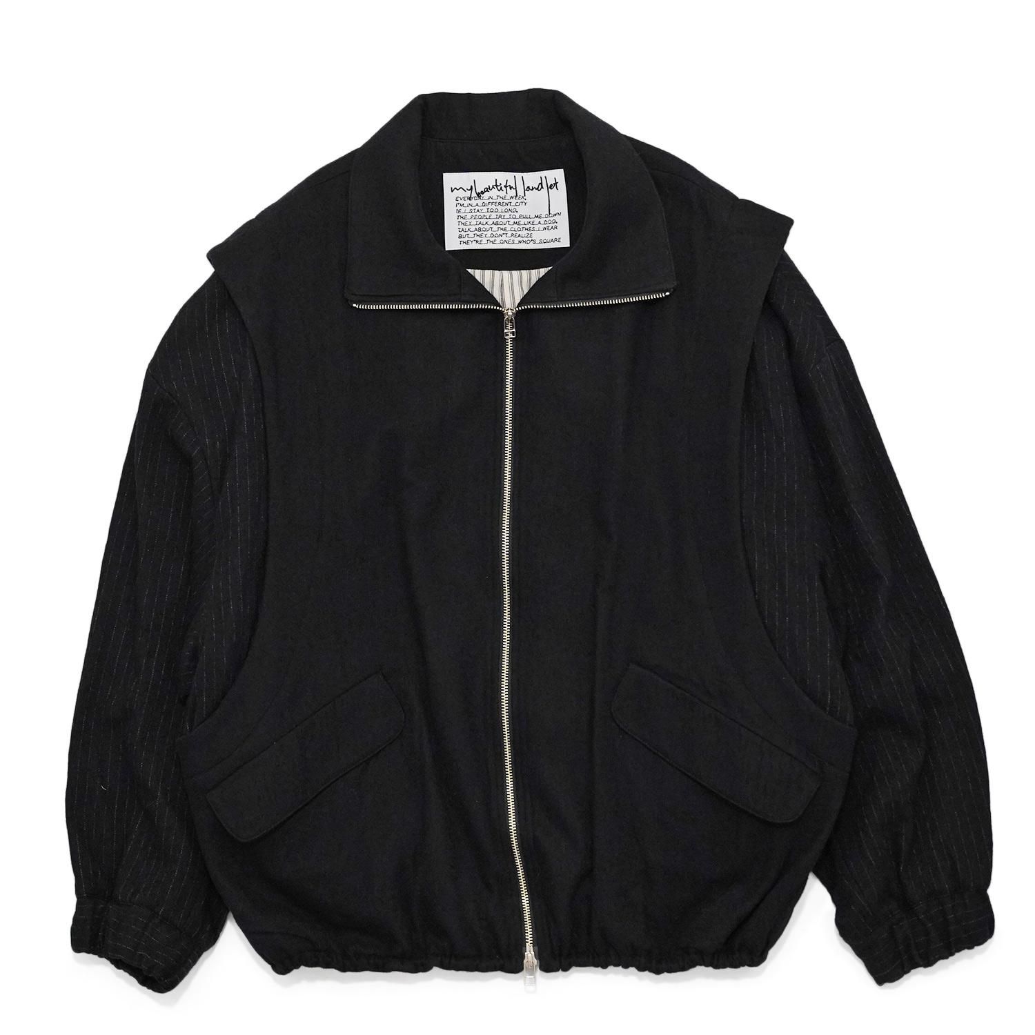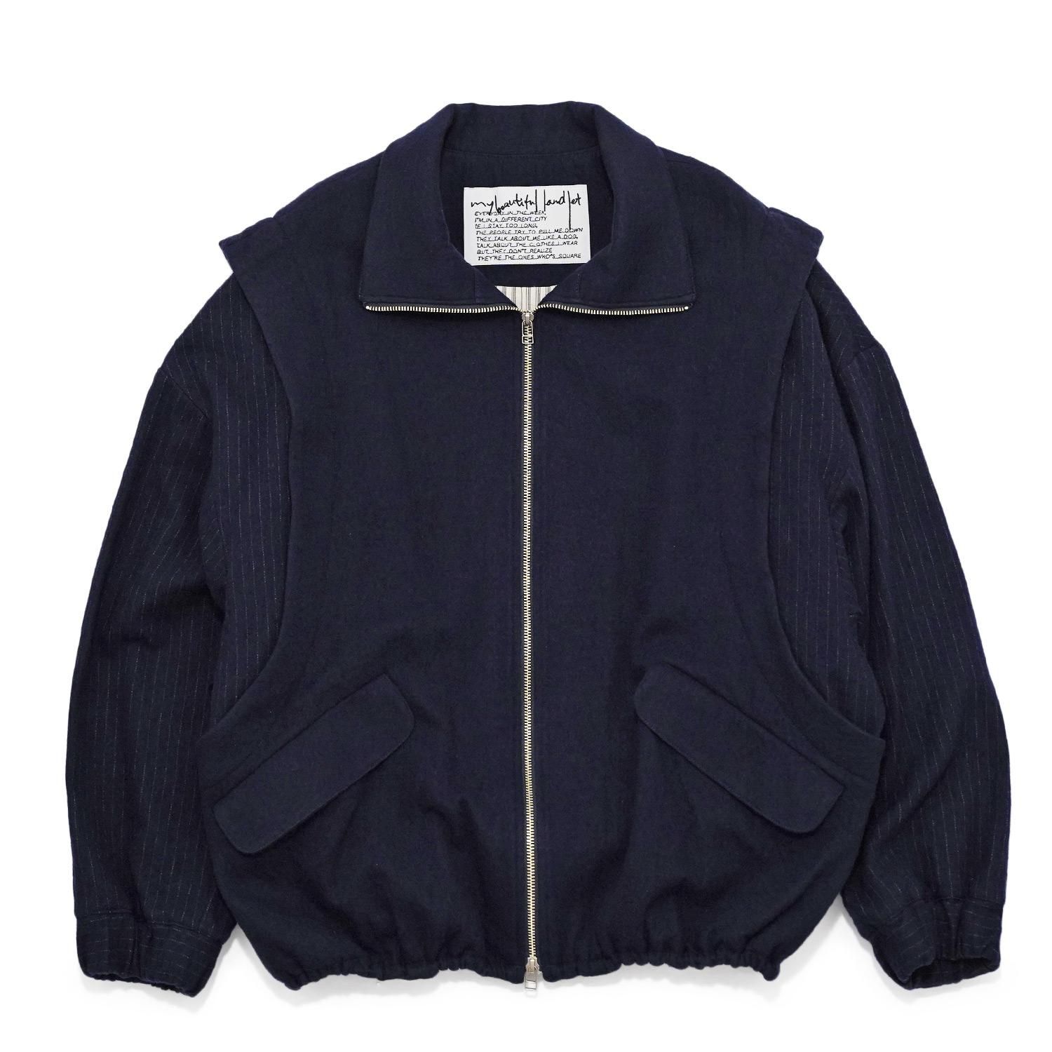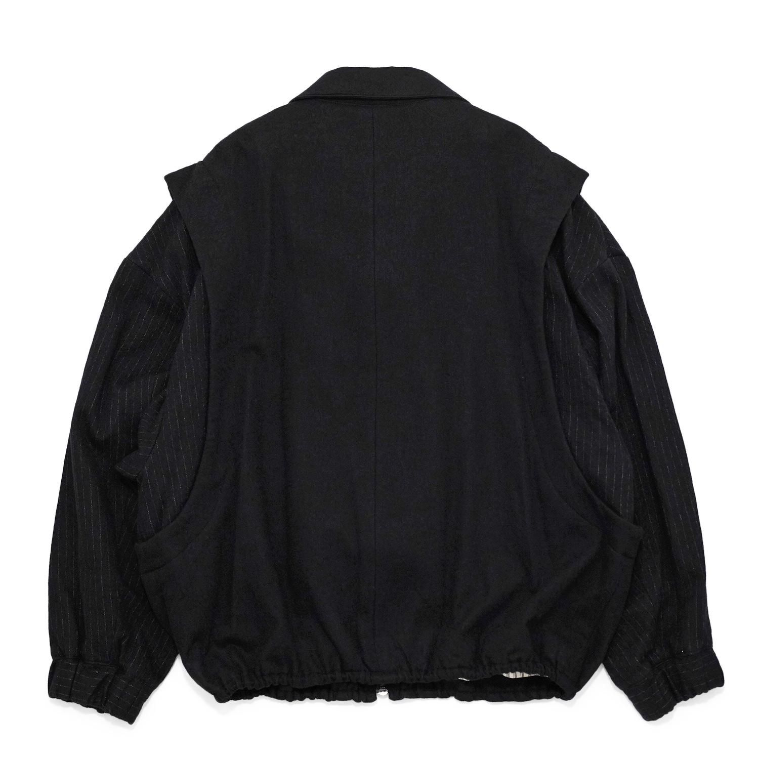 コットンウールの綾織り素材を縮絨加工した無地とストライプ柄を掛け合わせ仕立てました。