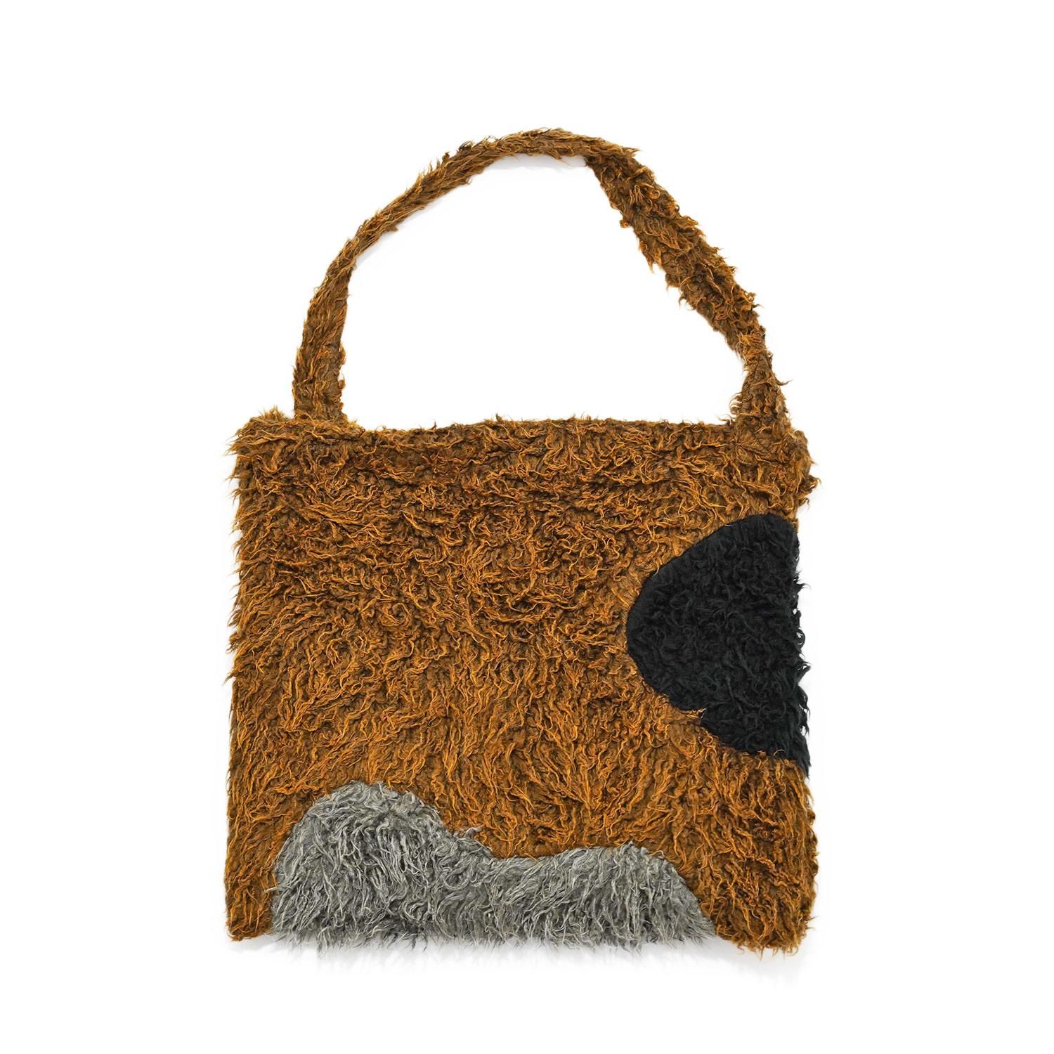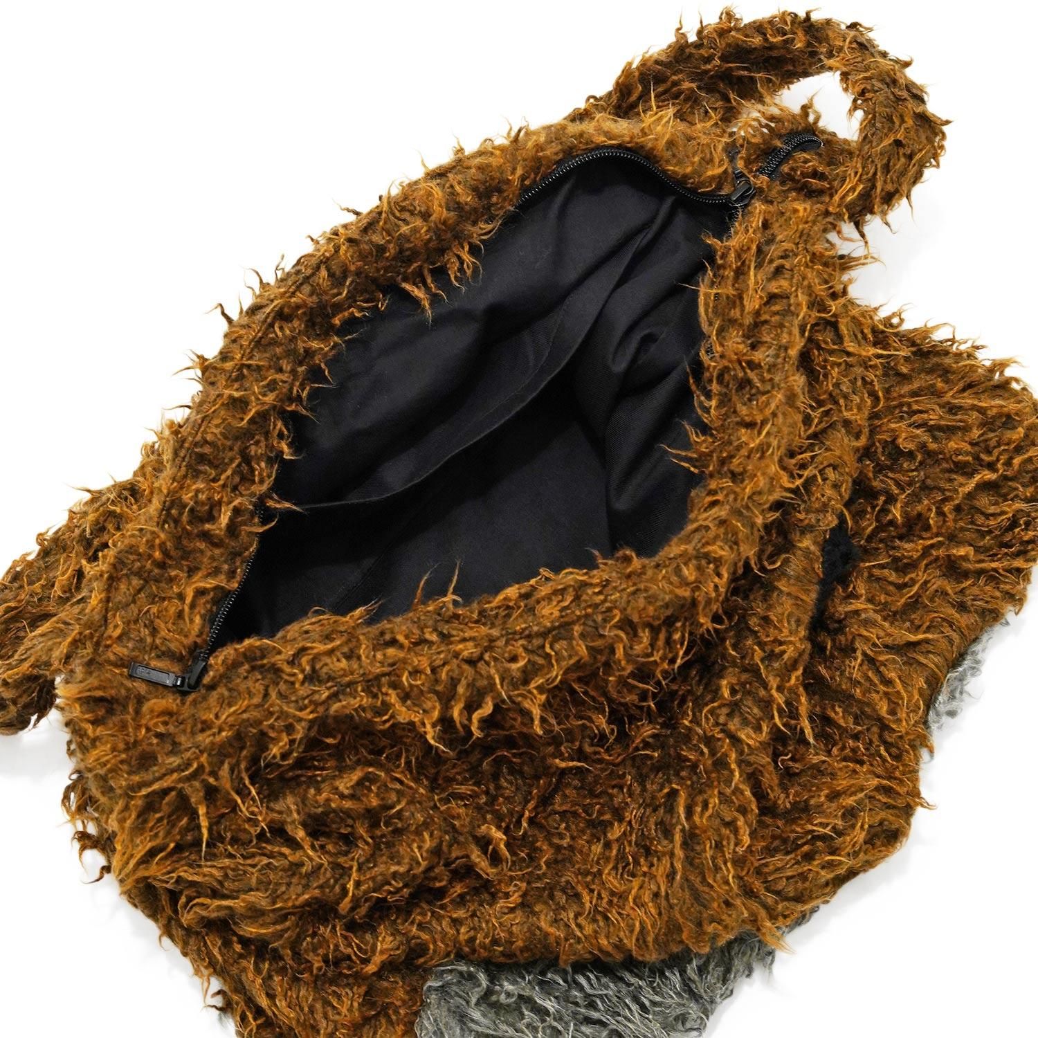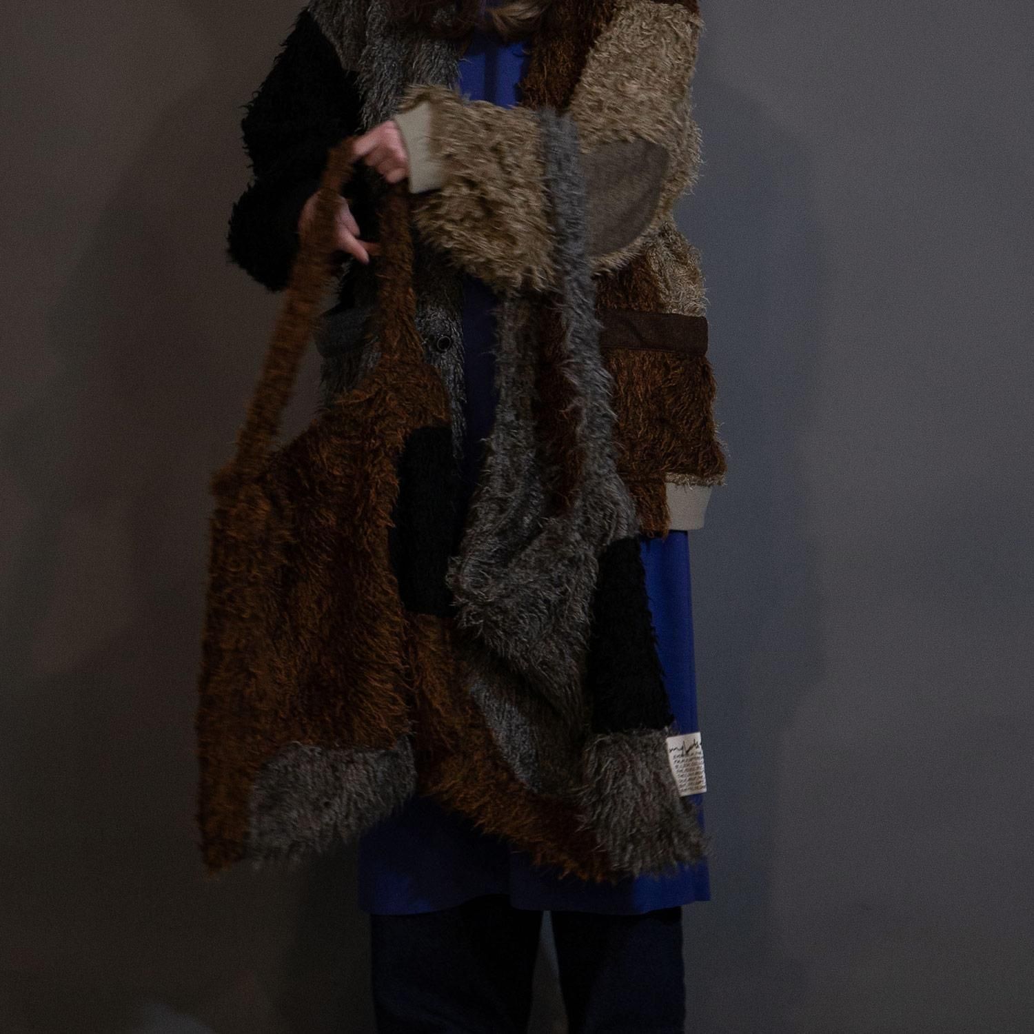 3色をミックスさせた遊びのきいたショルダーバッグ。毛足の長い冬らしい素材感が