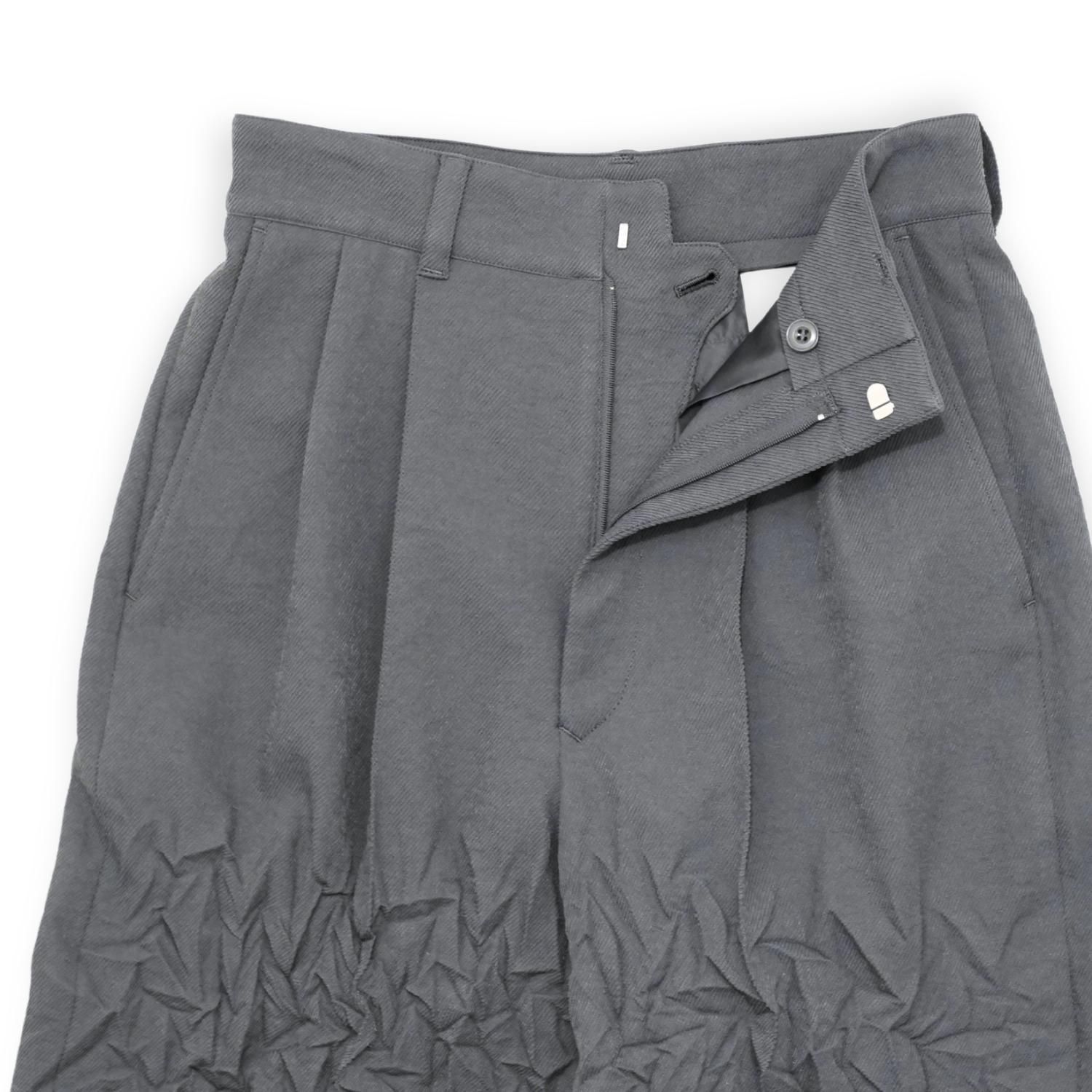 部分的に形状記憶 / キャッチワッシャープリーツ加工を施したアンフォルム / スラックスパンツ。