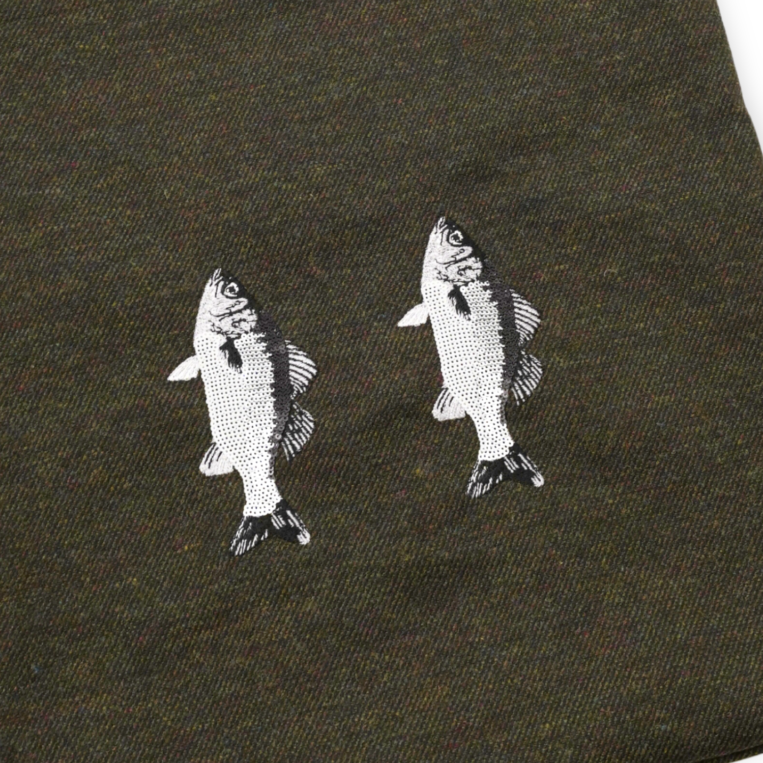 魚はスズキをモチーフとしており、スパンコールと刺繍でできております。