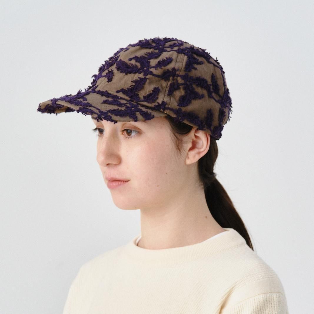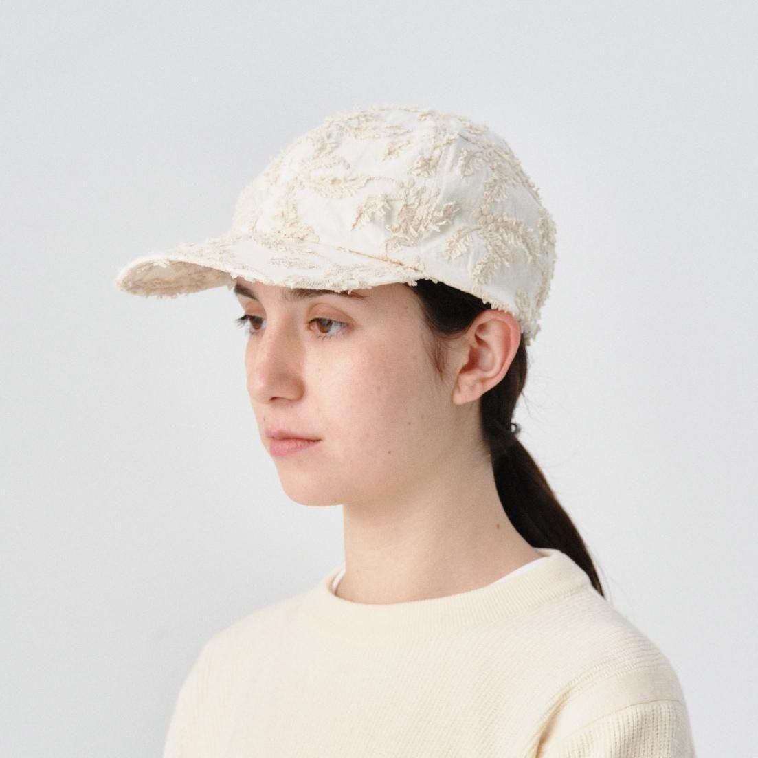 ボタニカル柄の刺繍をあしらった 6パネルキャップ。