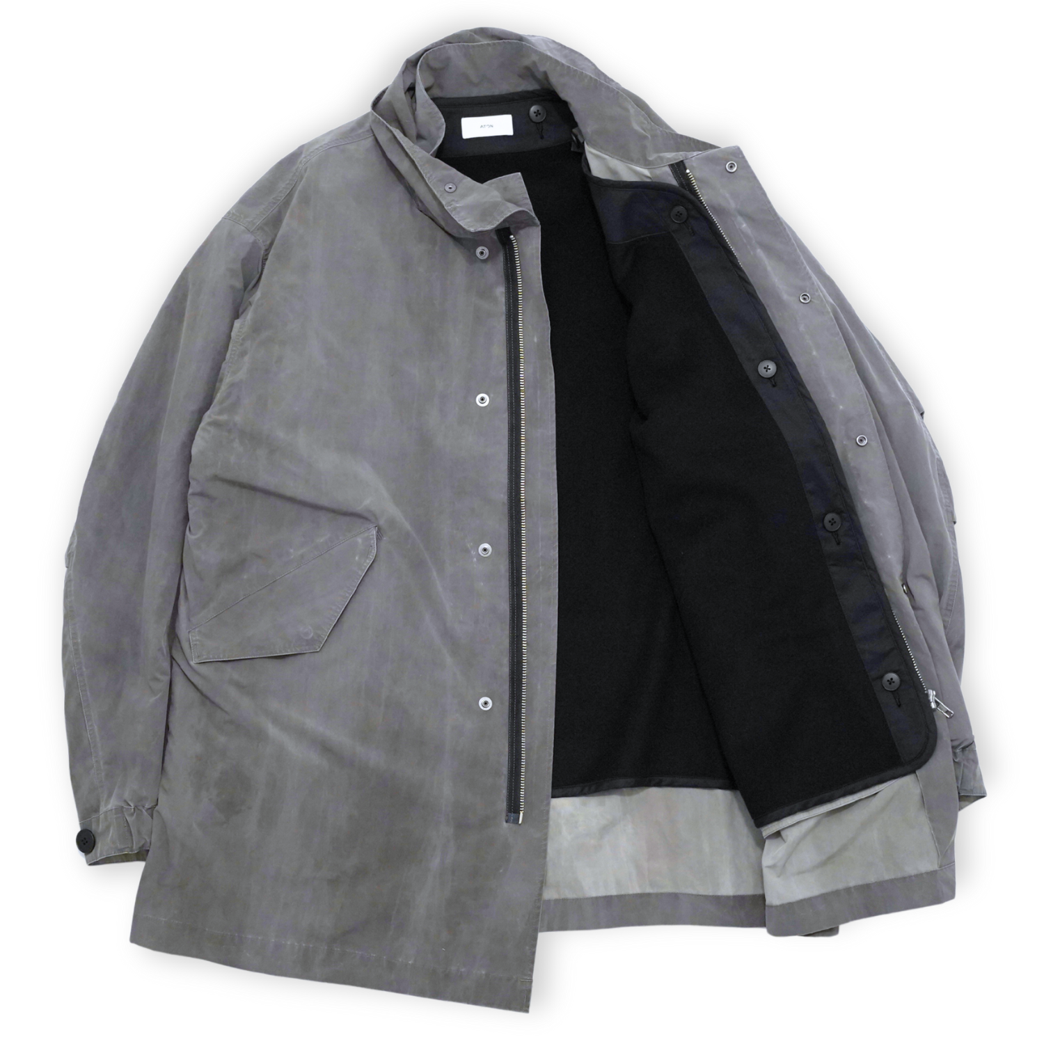 アメリカ軍の M-65モッズコートをベースに、フードを無くし、裾を横方向にスパッと切ったようなデザインのショートコートです。