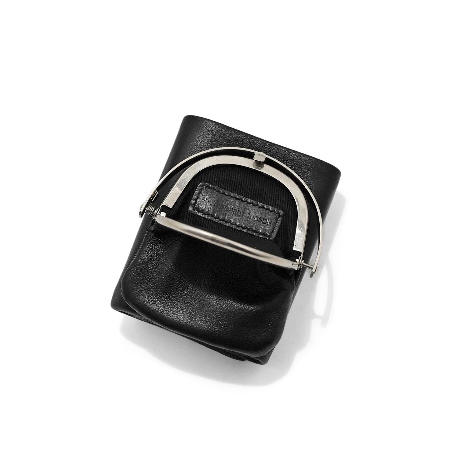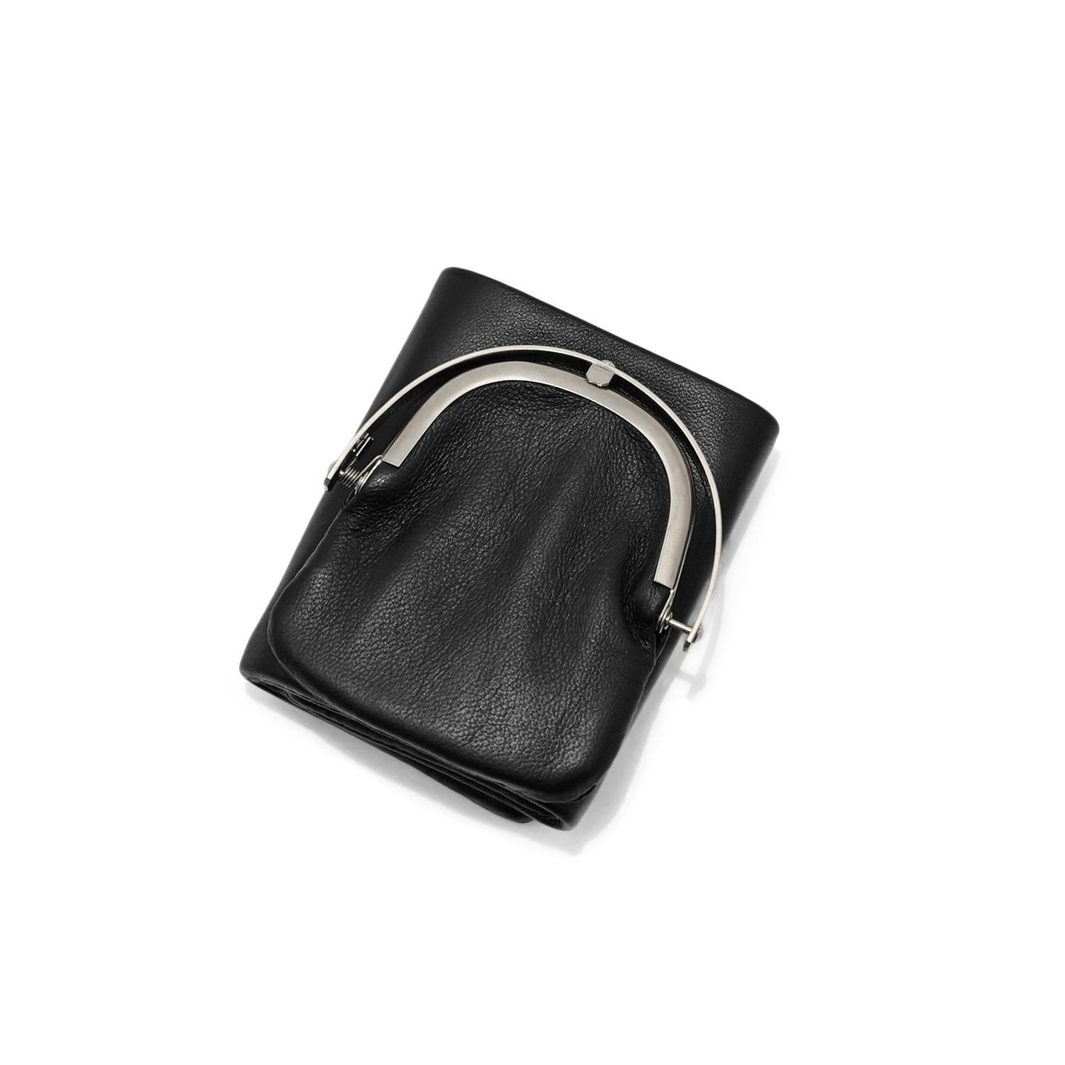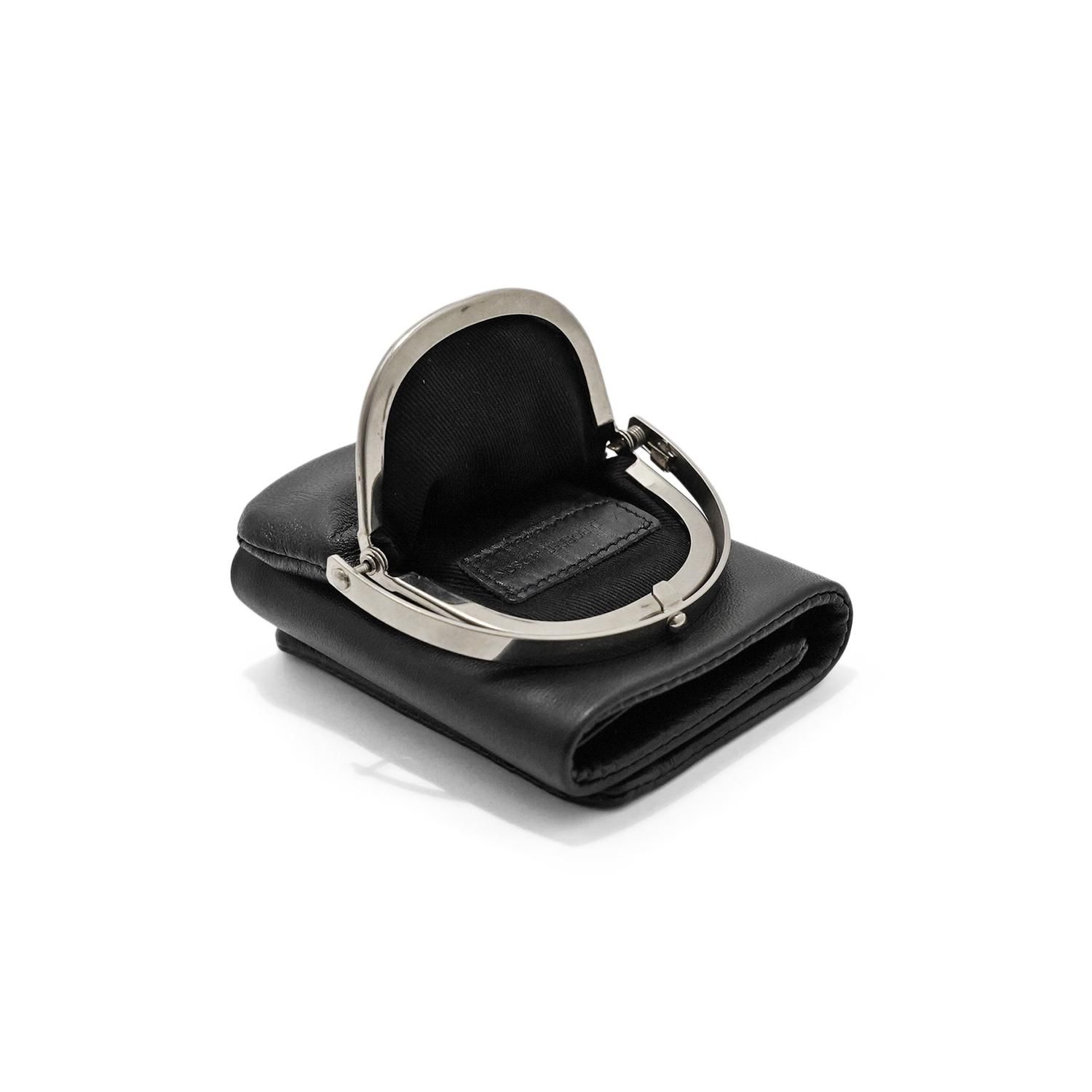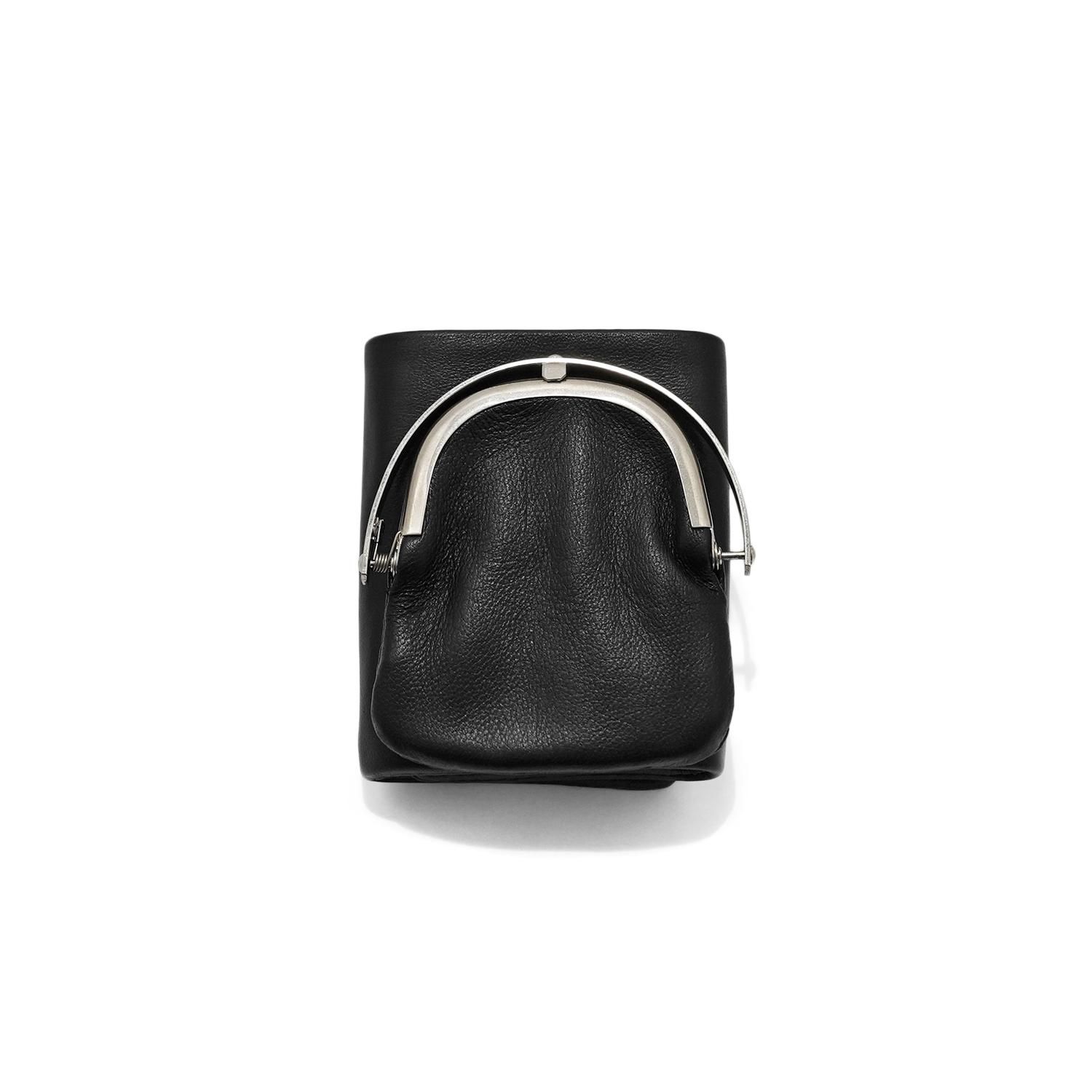 口金の外周についた金属フレームの両端を押して歪ませる事で、開閉する仕組みのがま口が特徴。