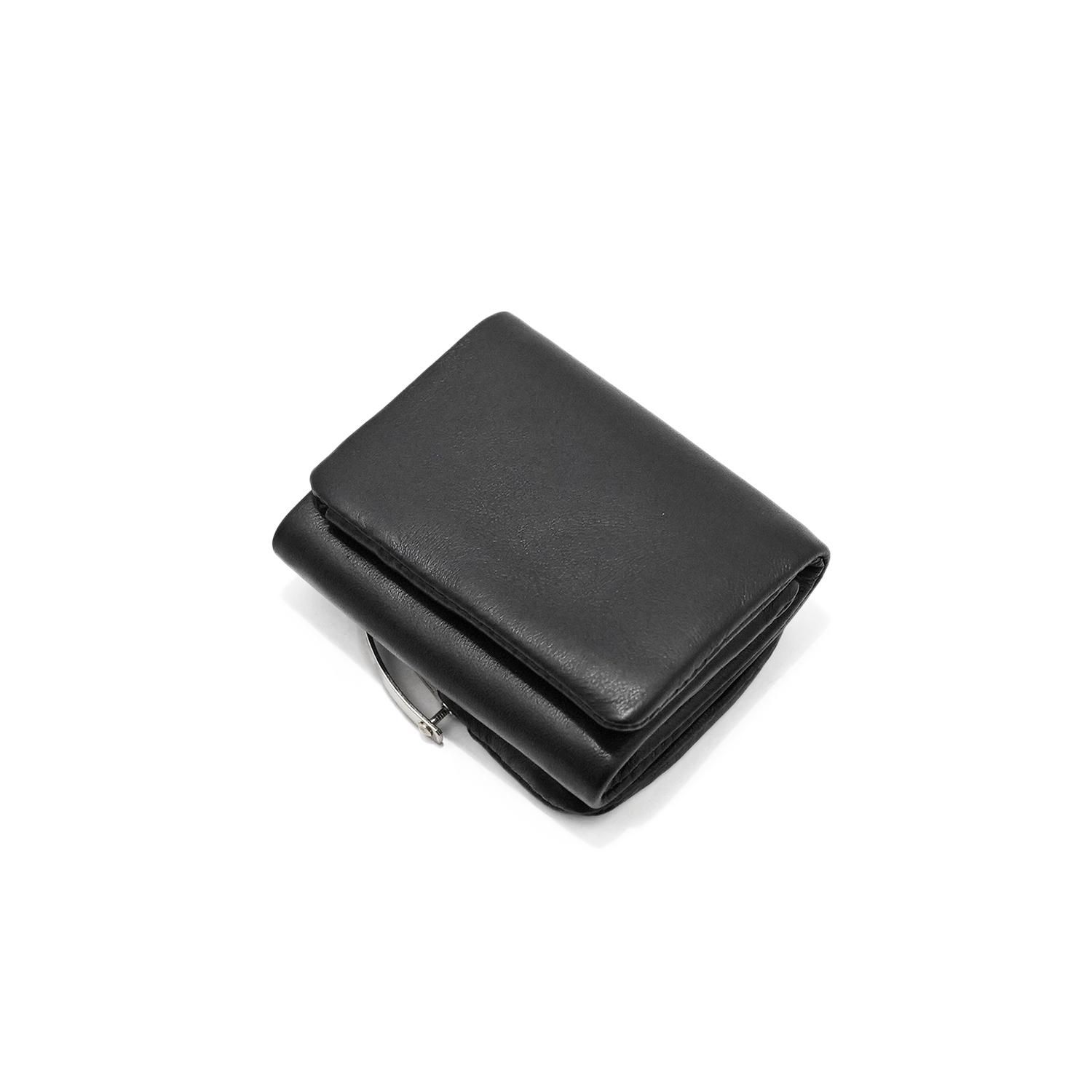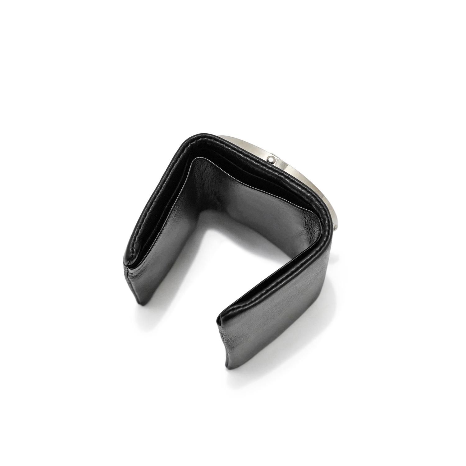 カード収納付きのお札入れとドッキングされたコンパクトな三つ折りタイプのレザーウォレットです。