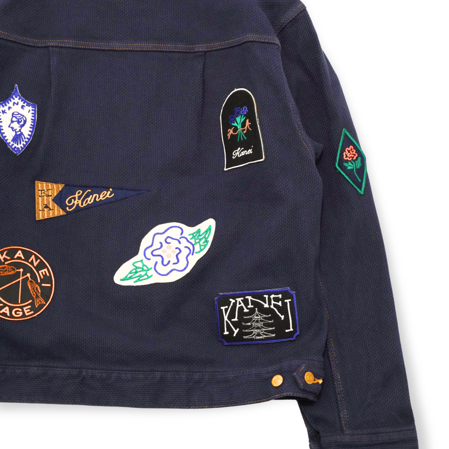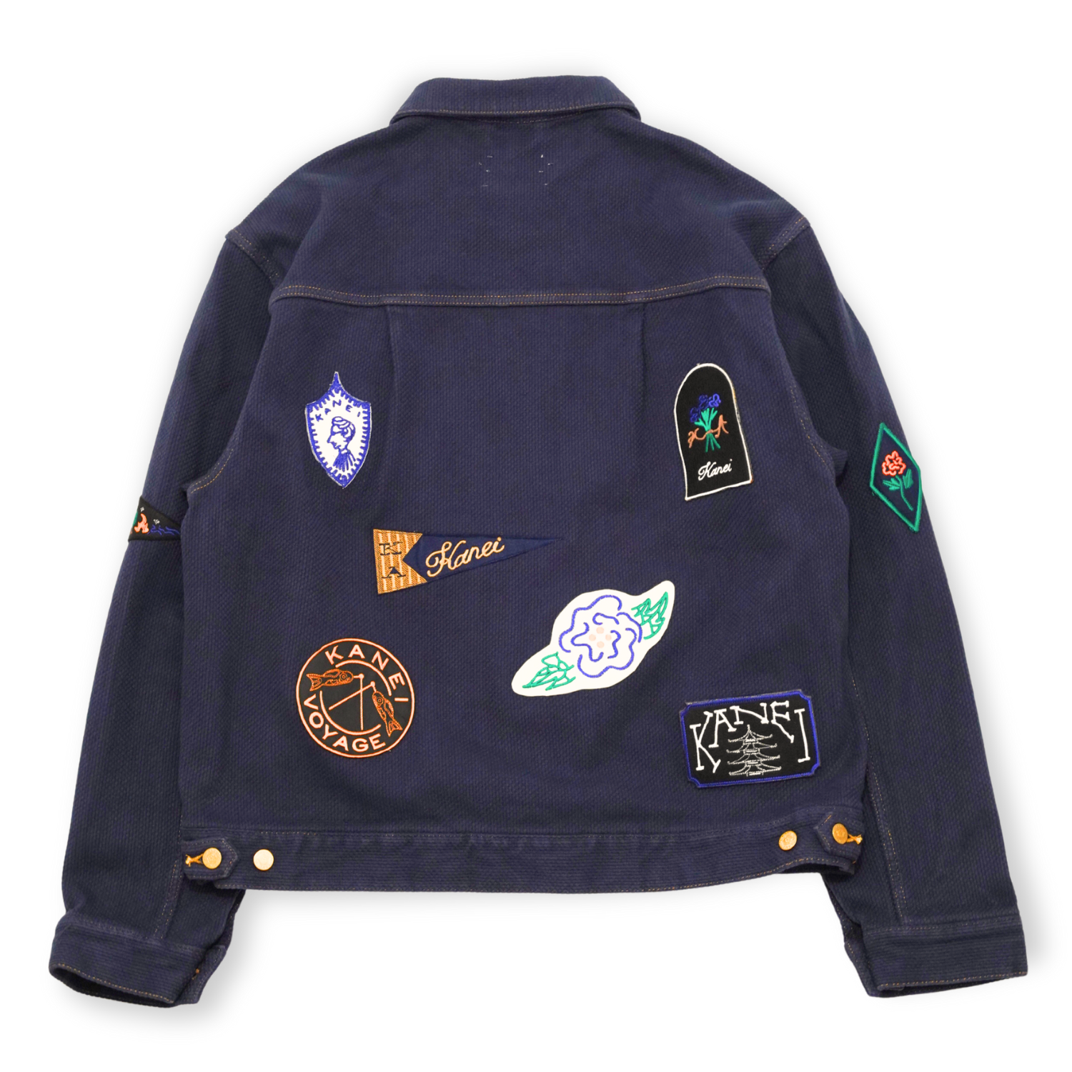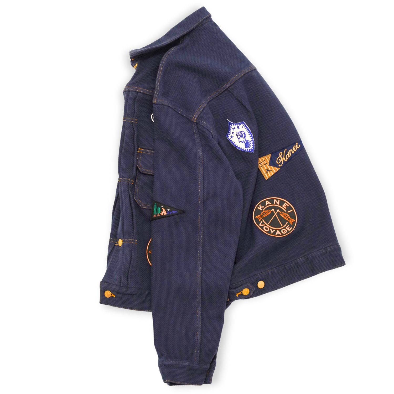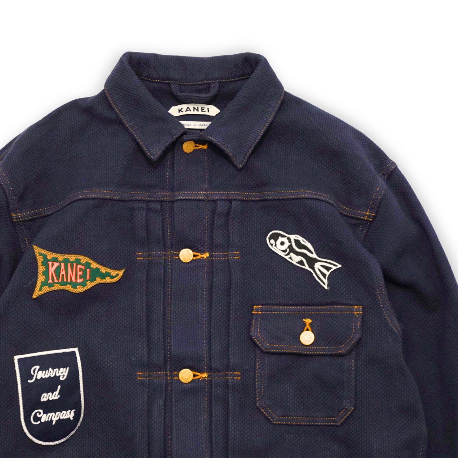 大戦モデルの仕様を踏襲した、深い紺色に染めた刺し子織トラッカージャケットに、