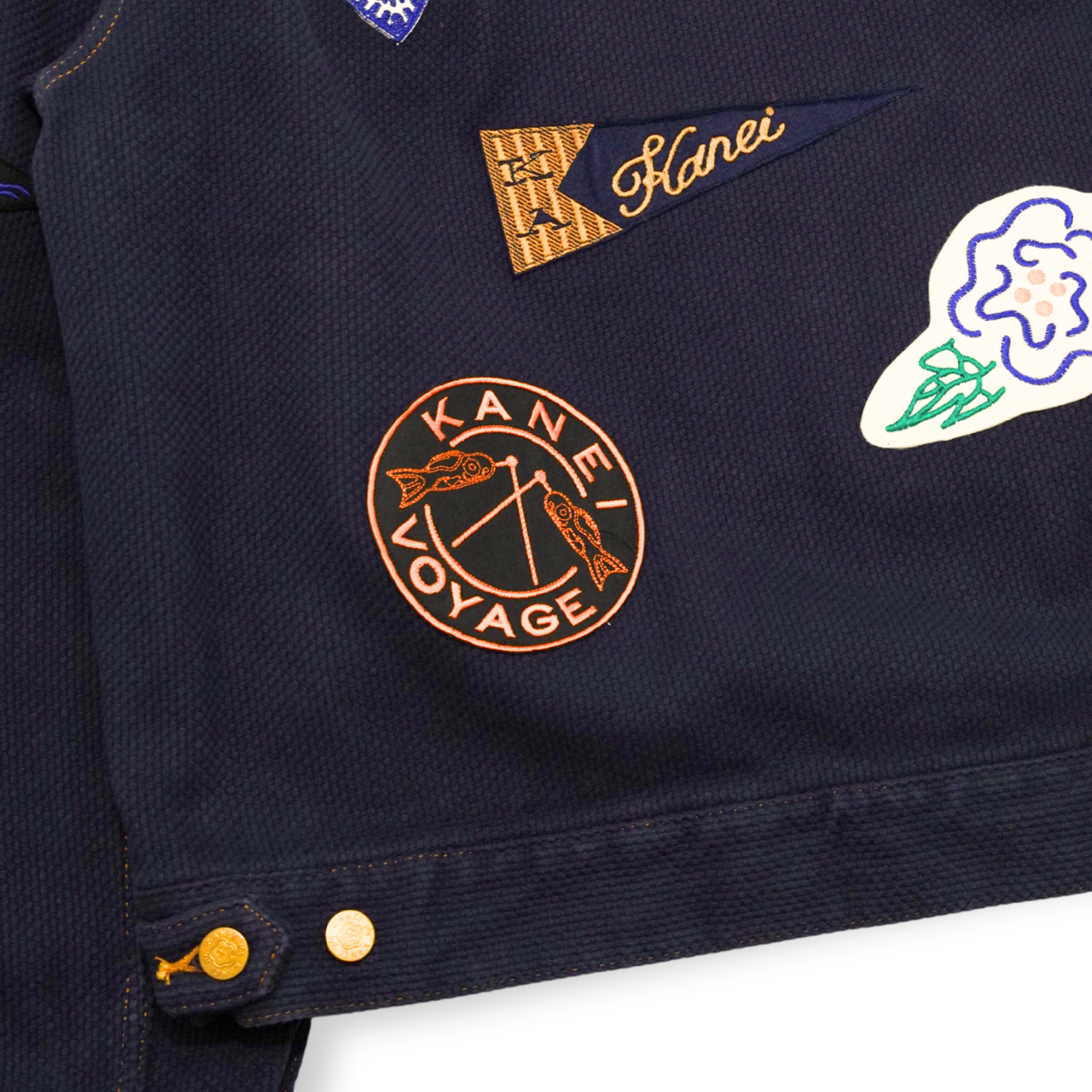 日本の自然と文化を象徴するモチーフと 1980年代アメリカン・グラフィックを融合した刺繍ワッペンを配置。