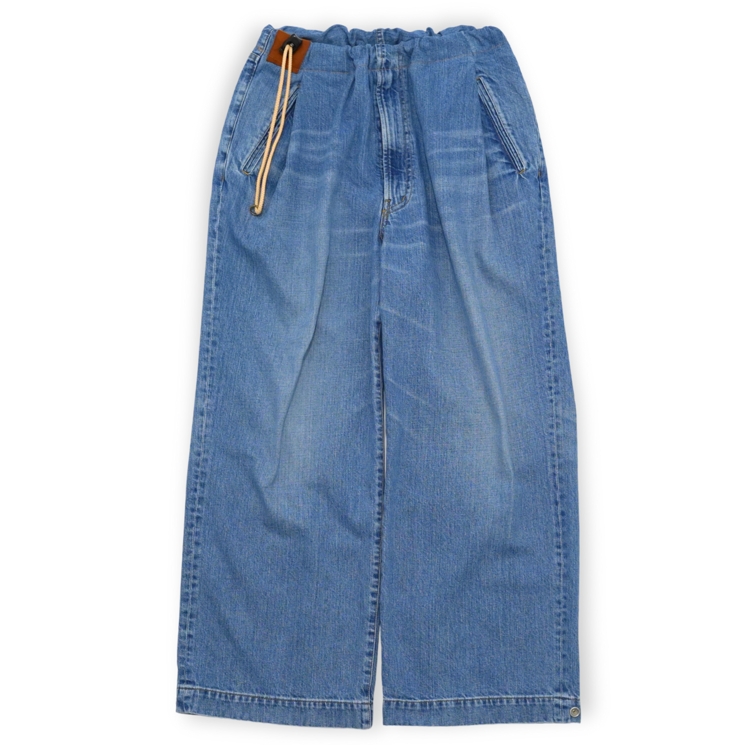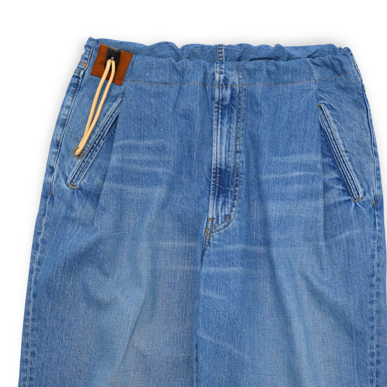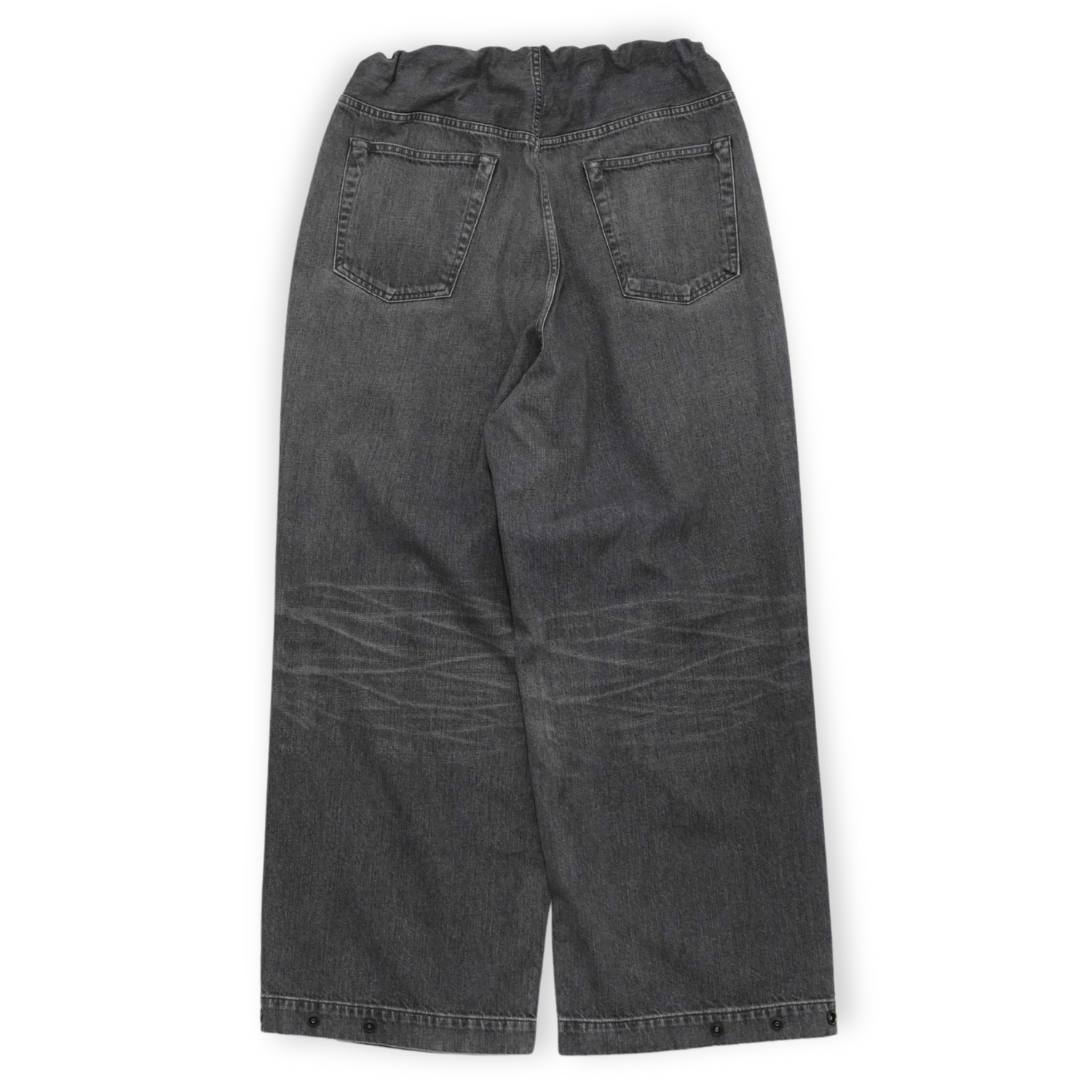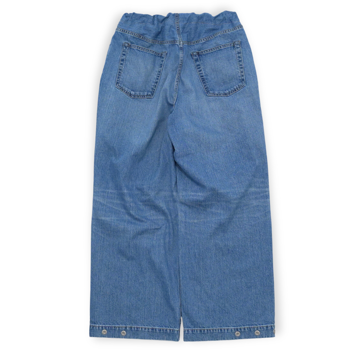 裾には 2段階のアジャストドットボタンがあり、ペグトップのような裾にタックの入ったシルエットにも変更が可能です。