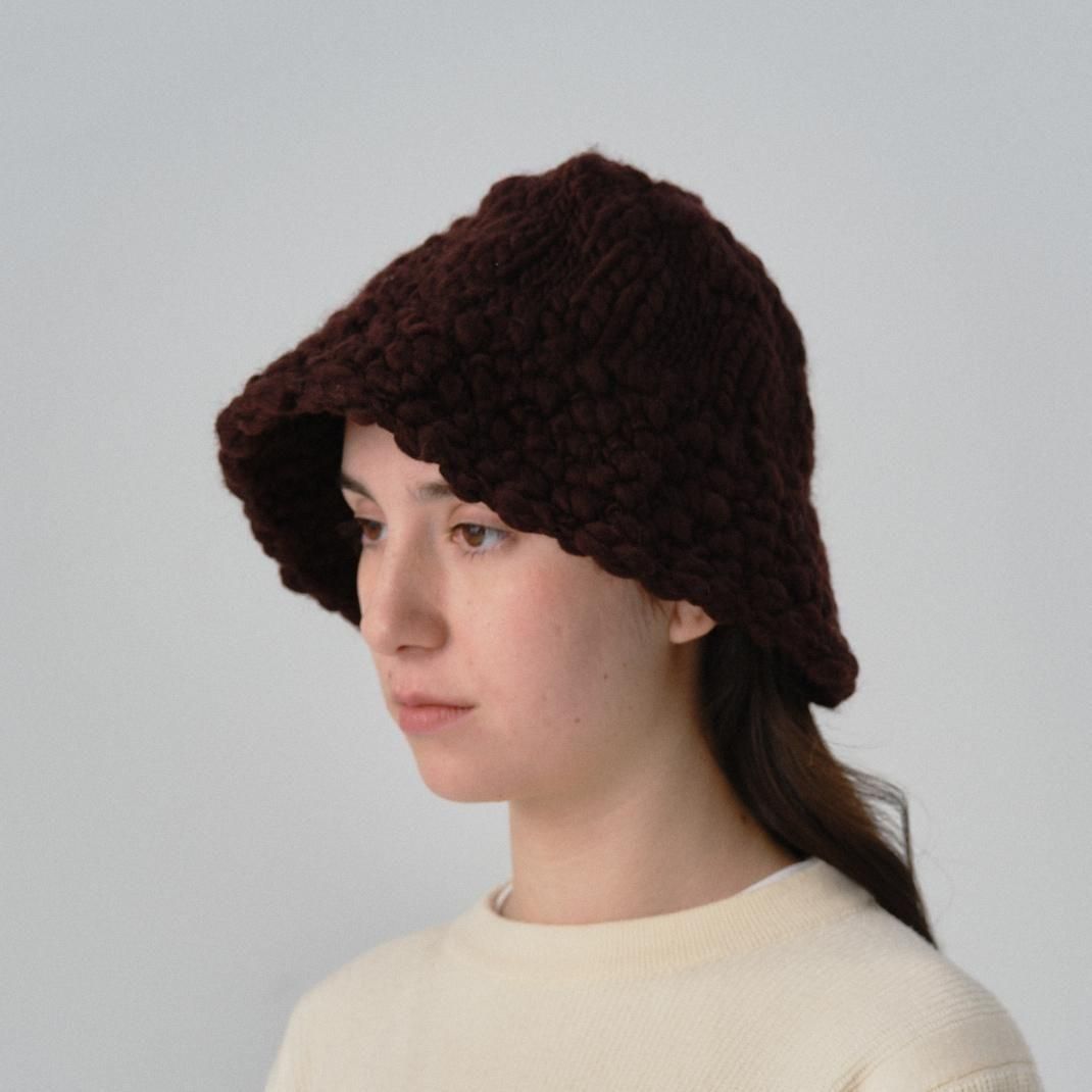 手編みによるふんわり柔らかな風合いと一点ずつ表情の異なる編地が特徴です。