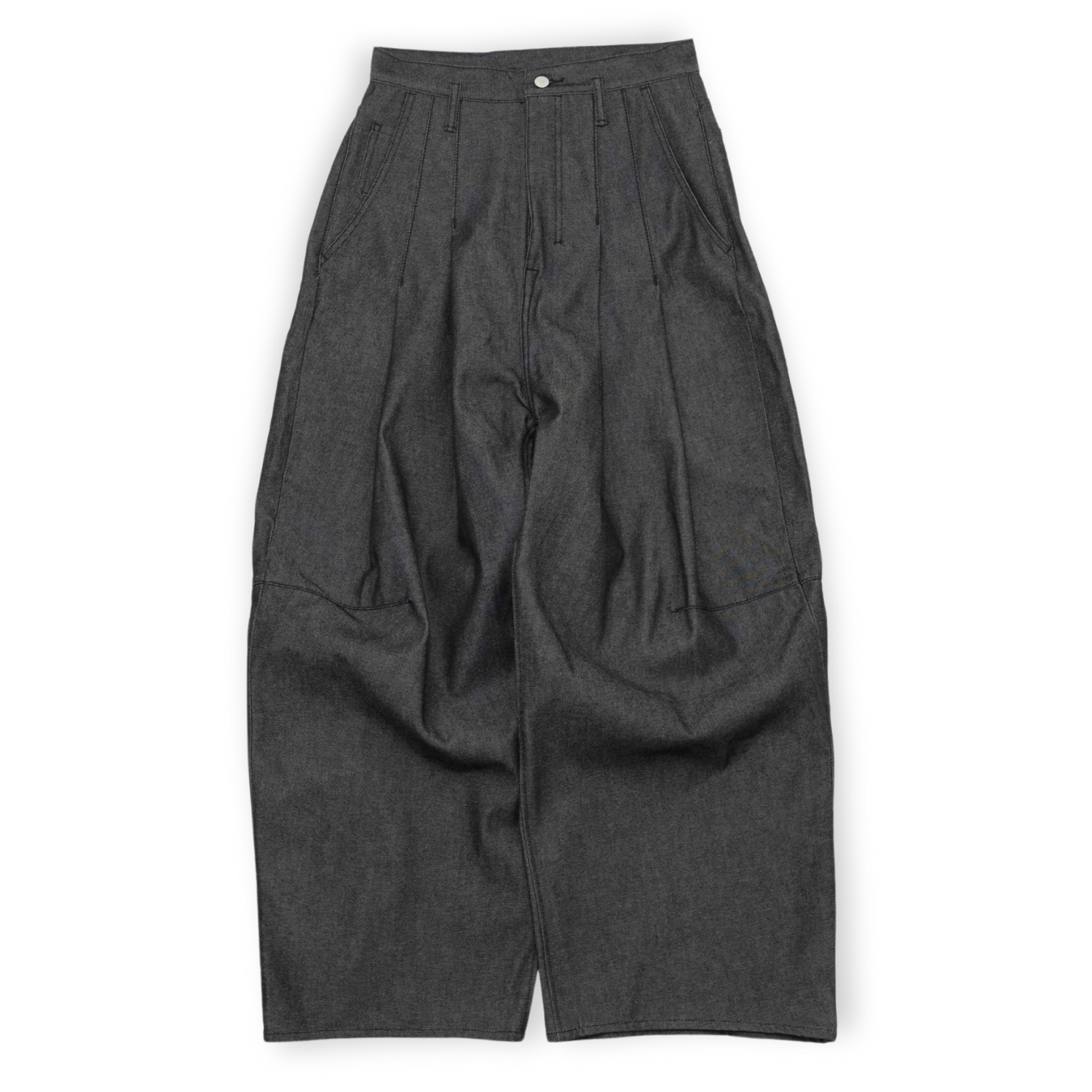 ワイドなシルエットでありながら腰まわりは収まりがよく、トップスを選ばず幅広いスタイリングに対応します。